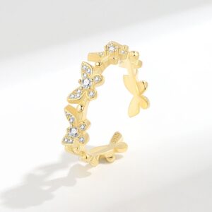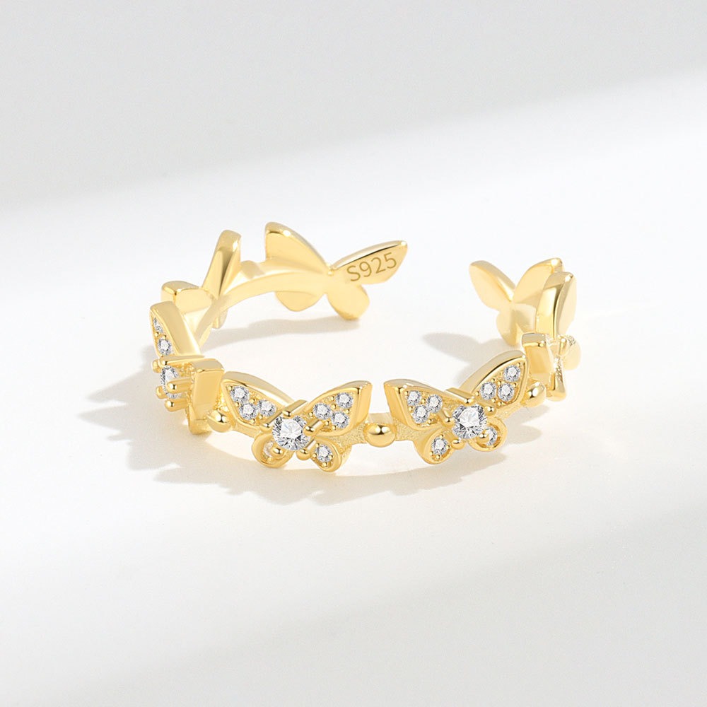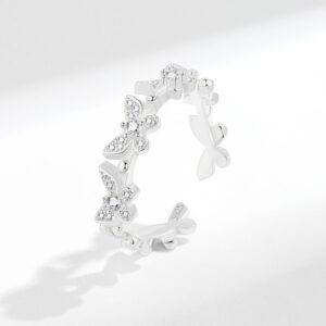 S925 Sterling Silver Ring Opening Adjustable Bat Wings Ladies Ring