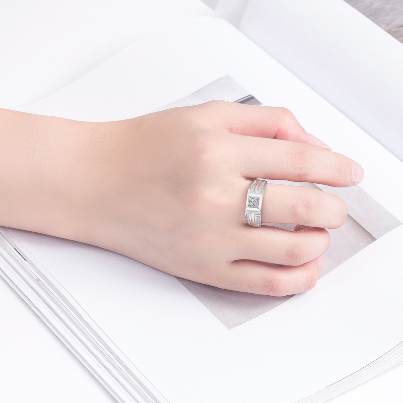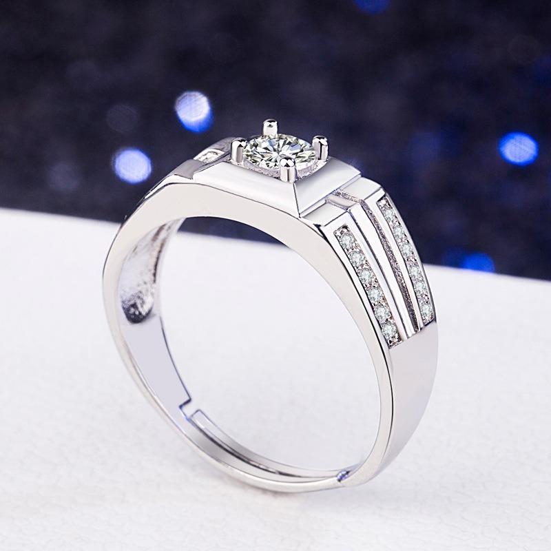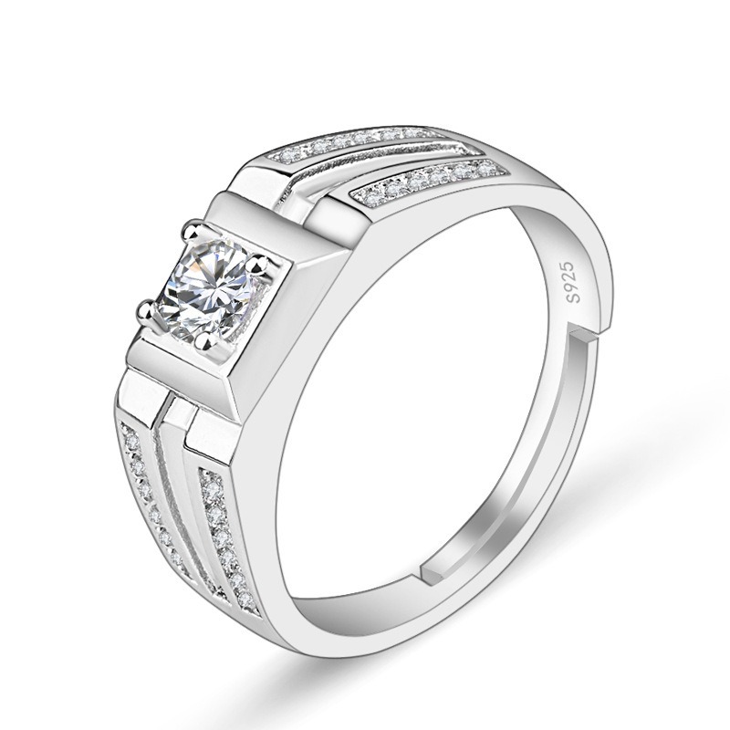 S925 sterling silver ring opening adjustable zircon men’s ring