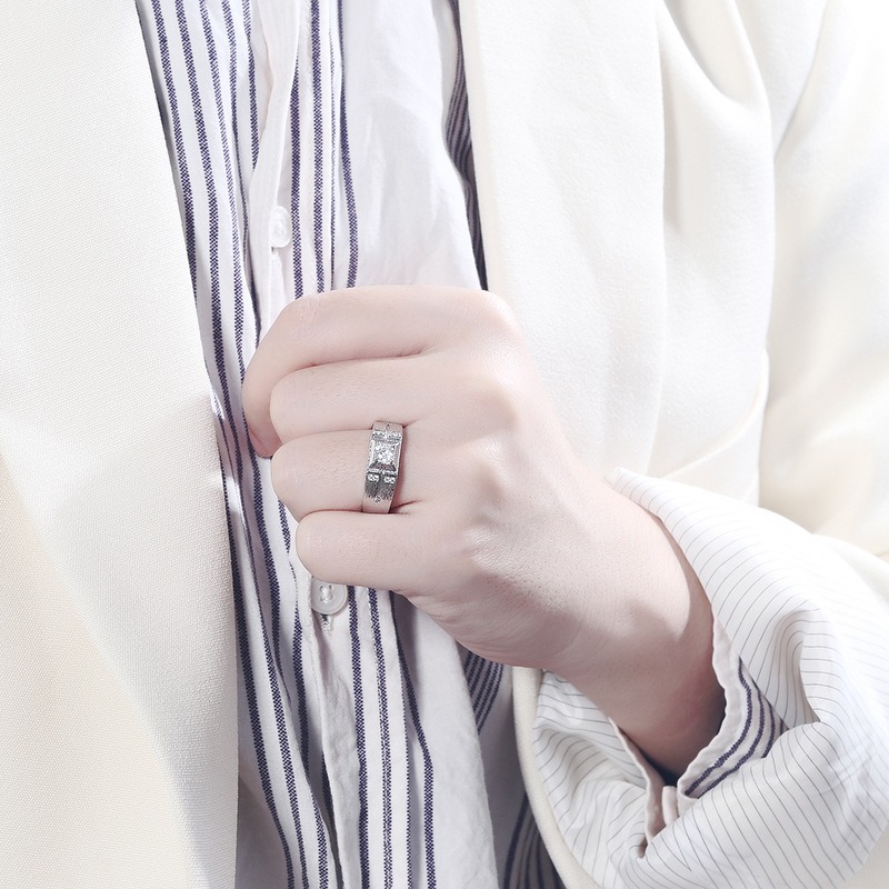 S925 sterling silver ring opening adjustable zircon men’s ring