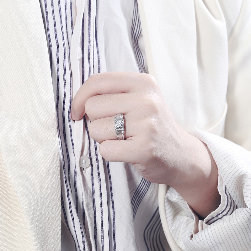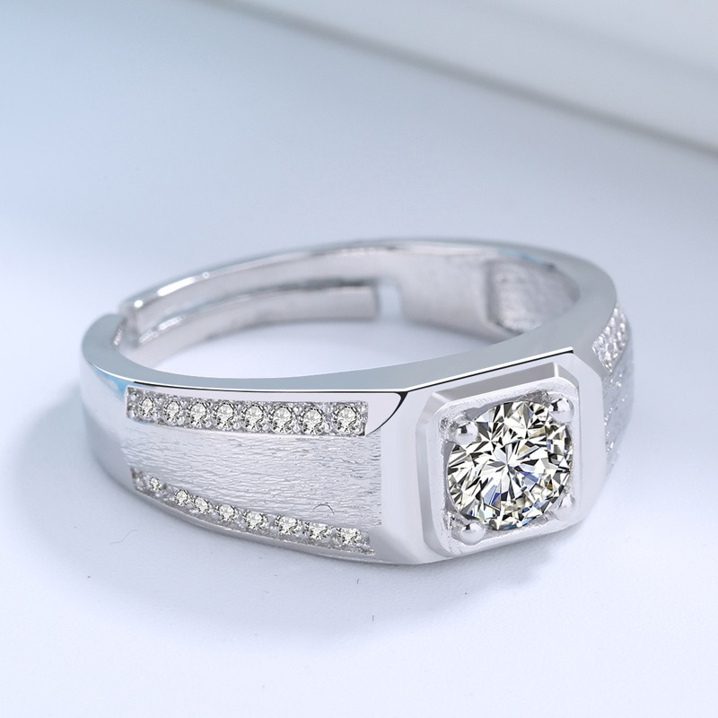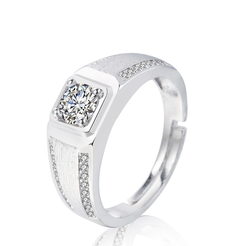 S925 sterling silver ring opening adjustable zircon men’s ring