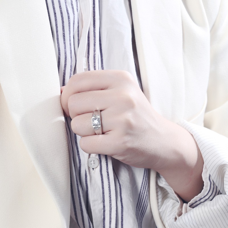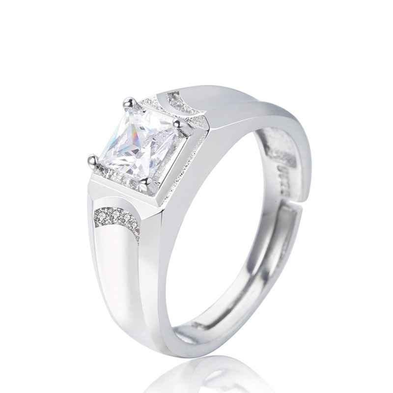 S925 sterling silver ring opening adjustable zircon men’s ring
