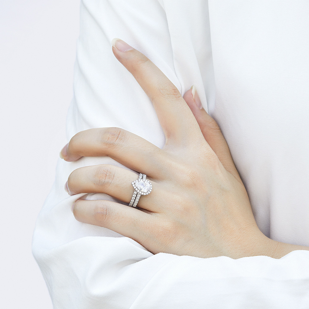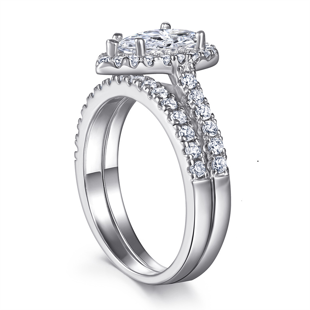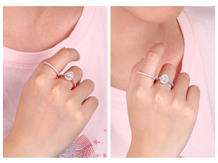 S925 Sterling Silver Ring Pear-shaped Zircon Ring Stacking Ring Set