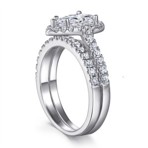 S925 sterling silver jewelry set European and American zircon square diamond ring necklace ins square stud earrings