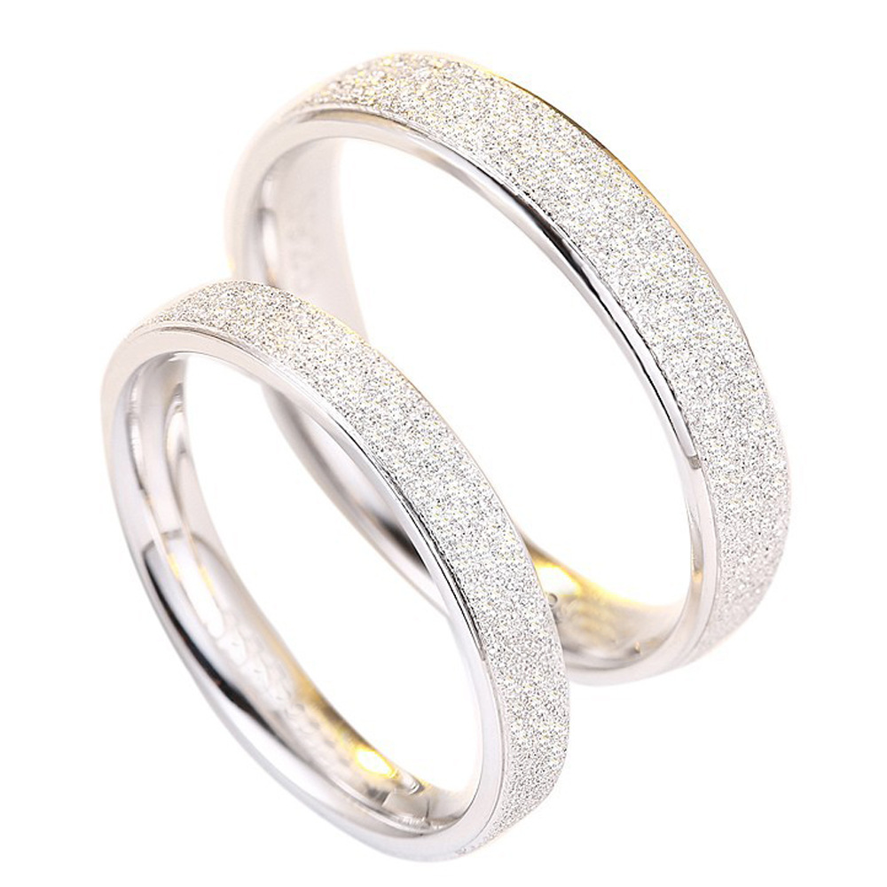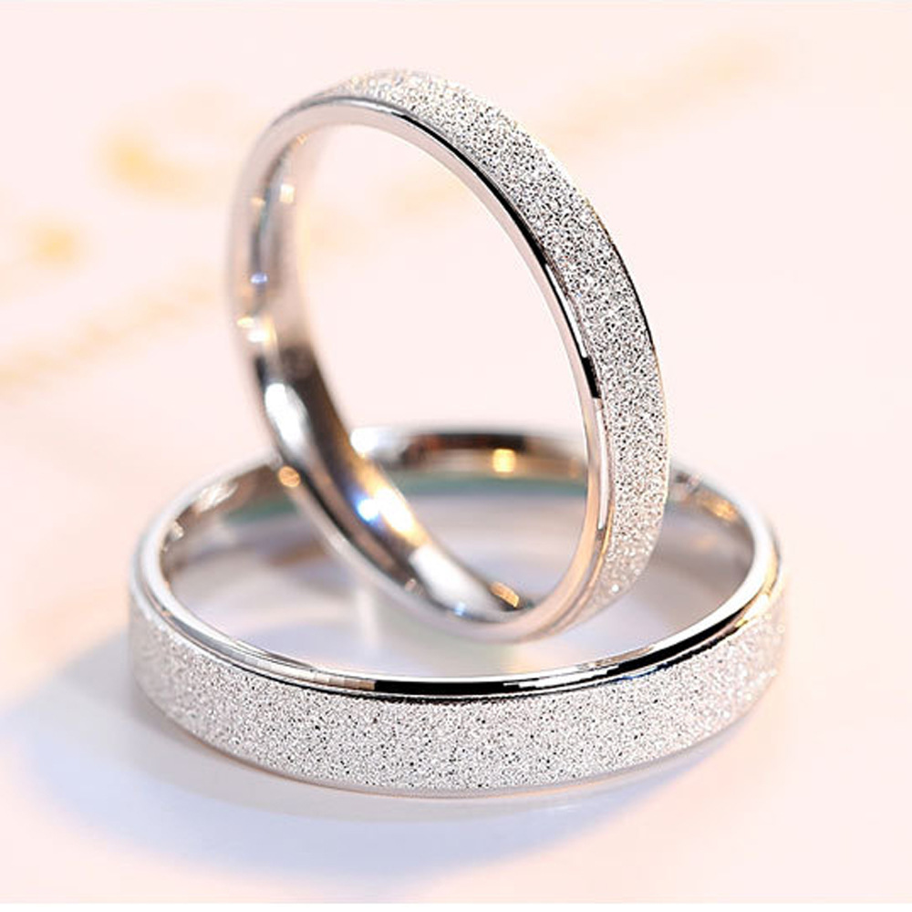 S925 sterling silver ring plain circle girls simple fashion frosted couple pair ring