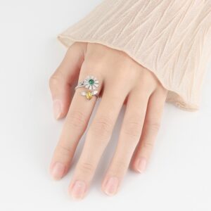 S925 Sterling Silver Ring Rotatable Bee Flower Opening Adjustable Ring for Women