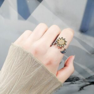 S925 sterling silver ring rotatable sunflower opening adjustable women’s ring