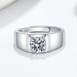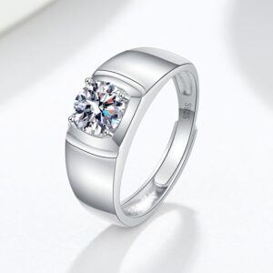 S925 Sterling Silver Ring Six Prongs 1 Carat GRA Moissanite Open Adjustable Men’s Ring