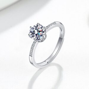 S925 Sterling Silver Ring Six Prongs GRA Moissanite Ring for Women
