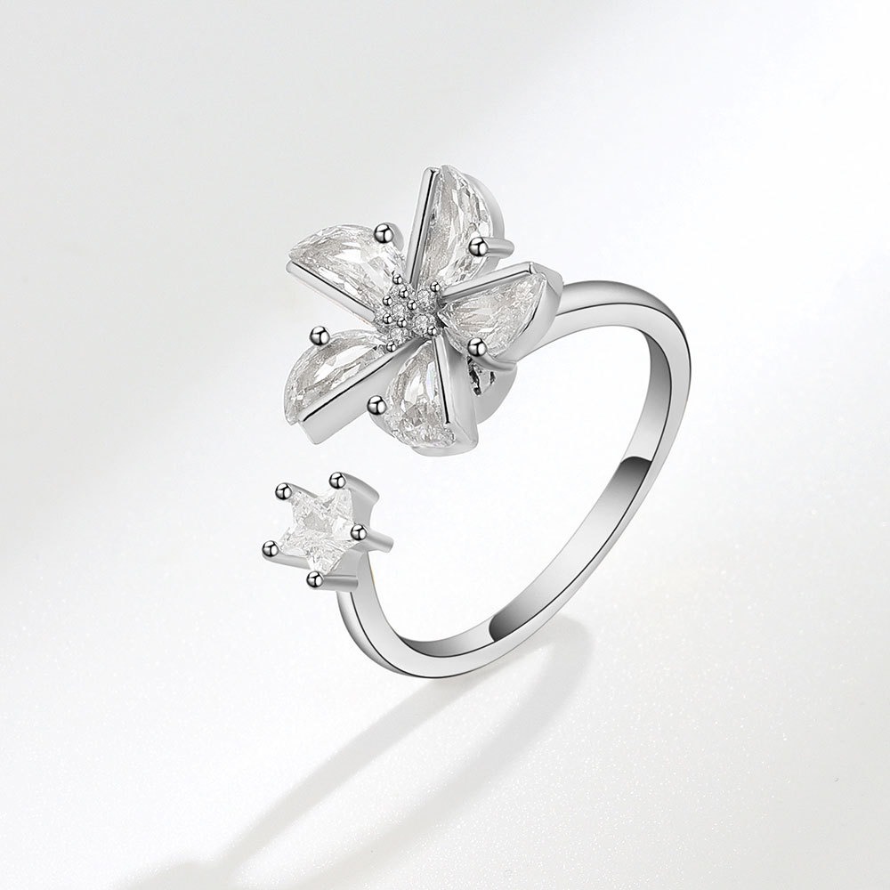 S925 Sterling Silver Ring Swivelling Windmill Opening Adjustable Ring for Women