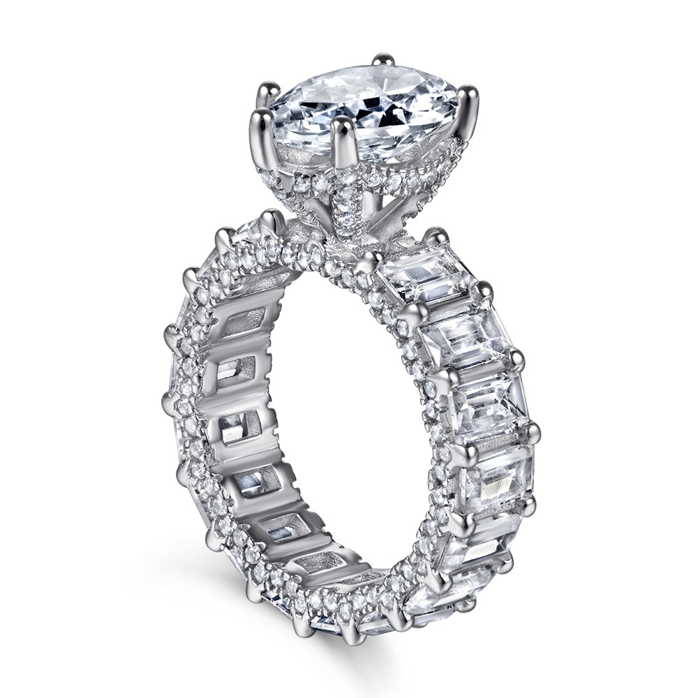 Europe and America S925 sterling silver and diamond zircon ring women’s six-prong diamond ring wedding ring