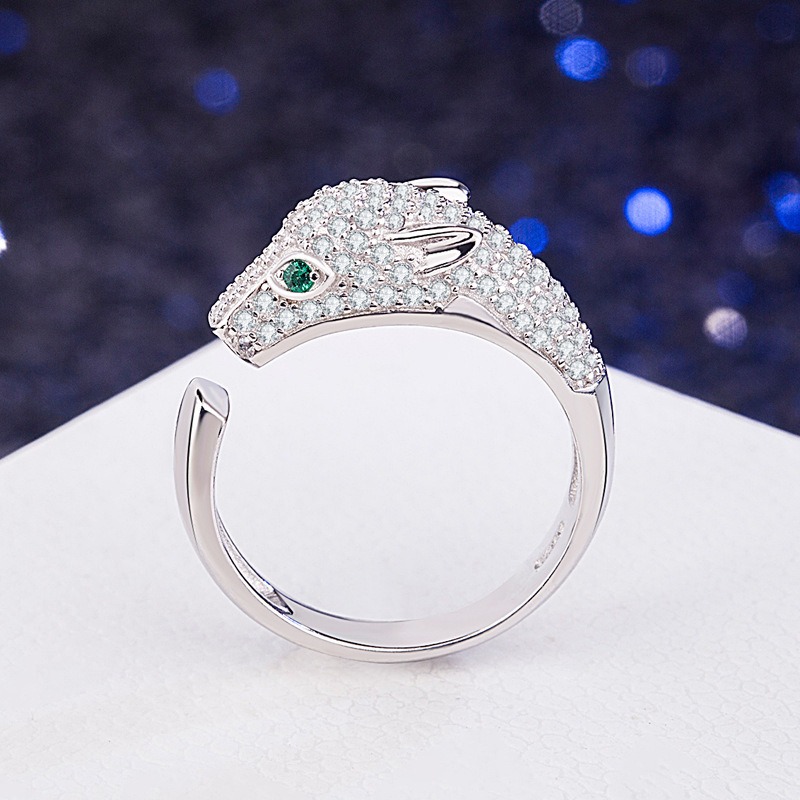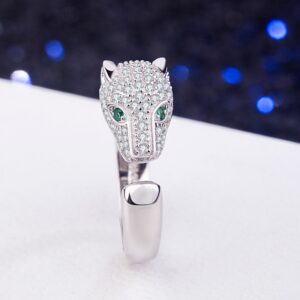 S925 sterling silver ring with zirconia leopard head opening adjustable men’s ring