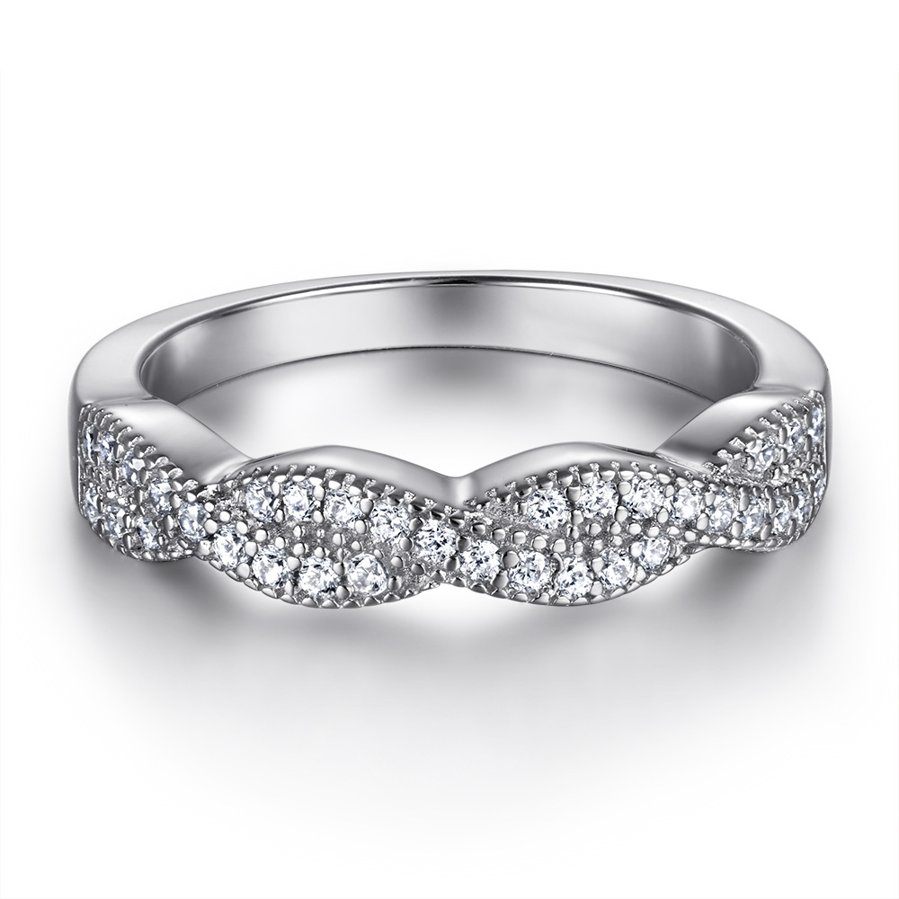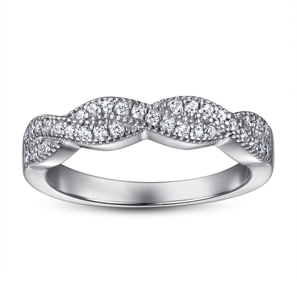 S925 sterling silver rings intertwined twisted thread row diamond finger ring