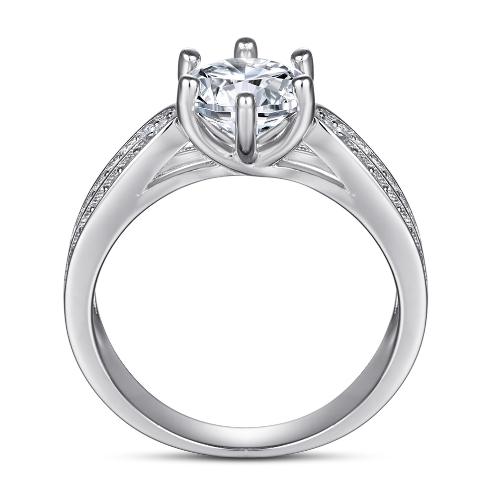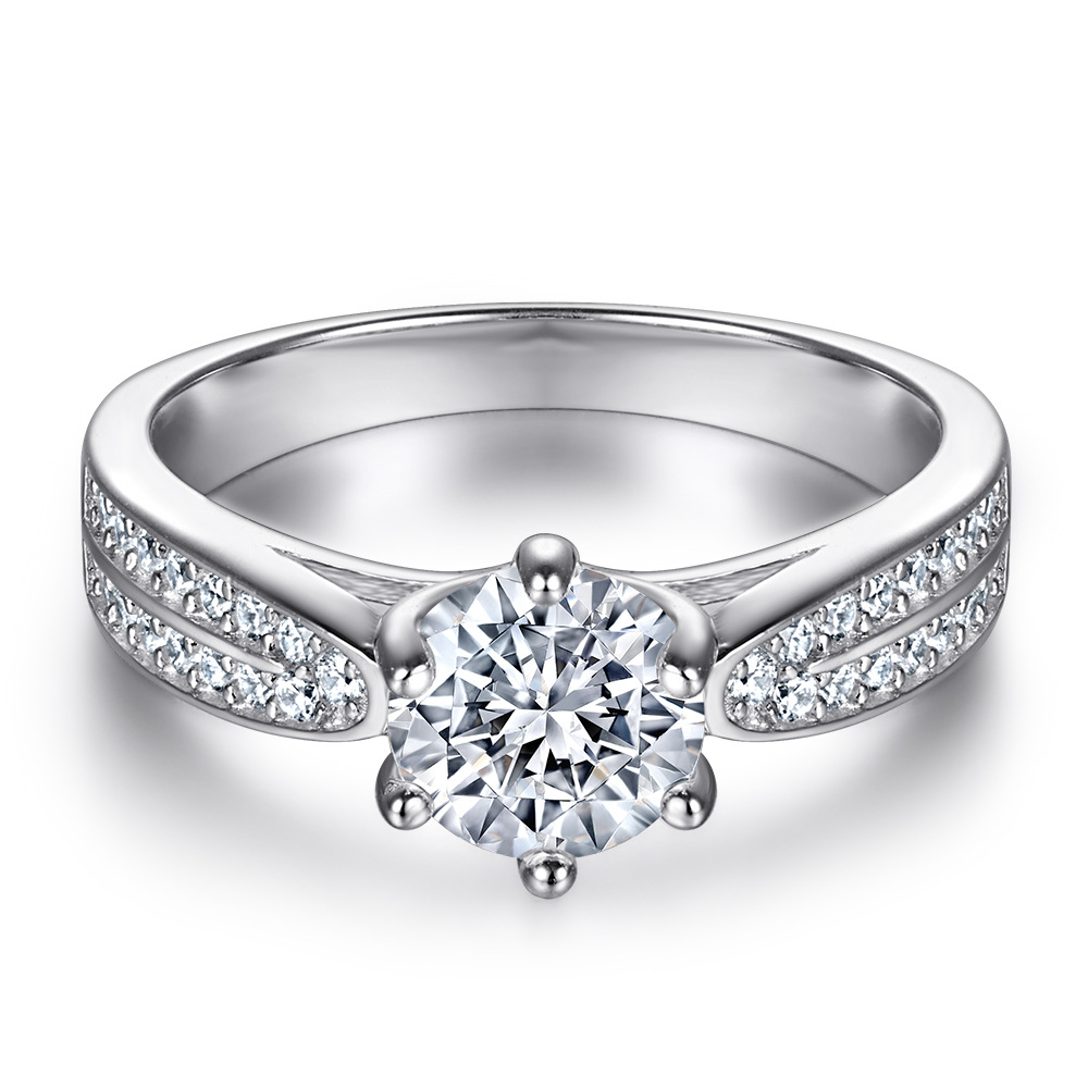 S925 sterling silver rings, silver pure silver, fashion women’s rings, six-clawed zircon, silver jewelry, Europe and America