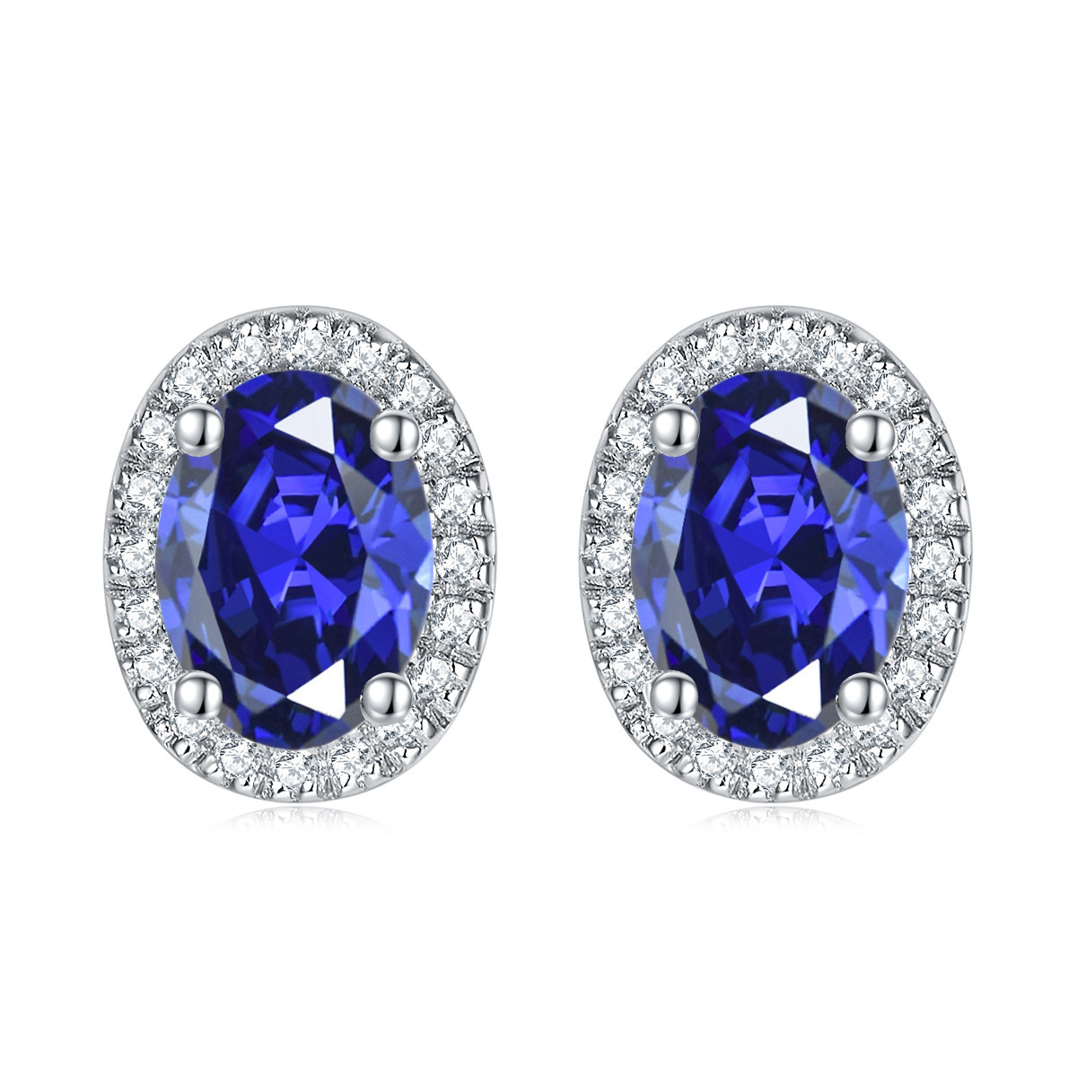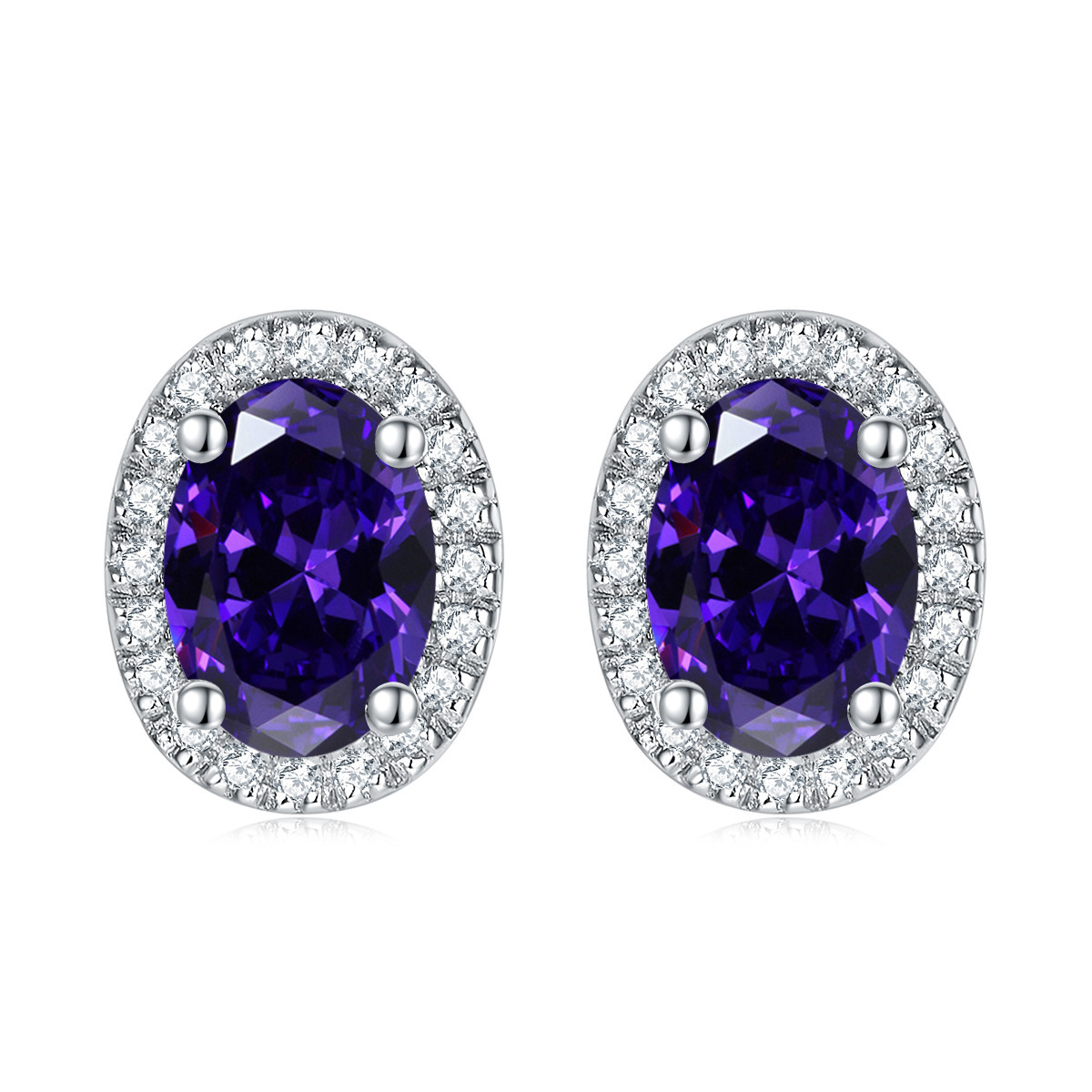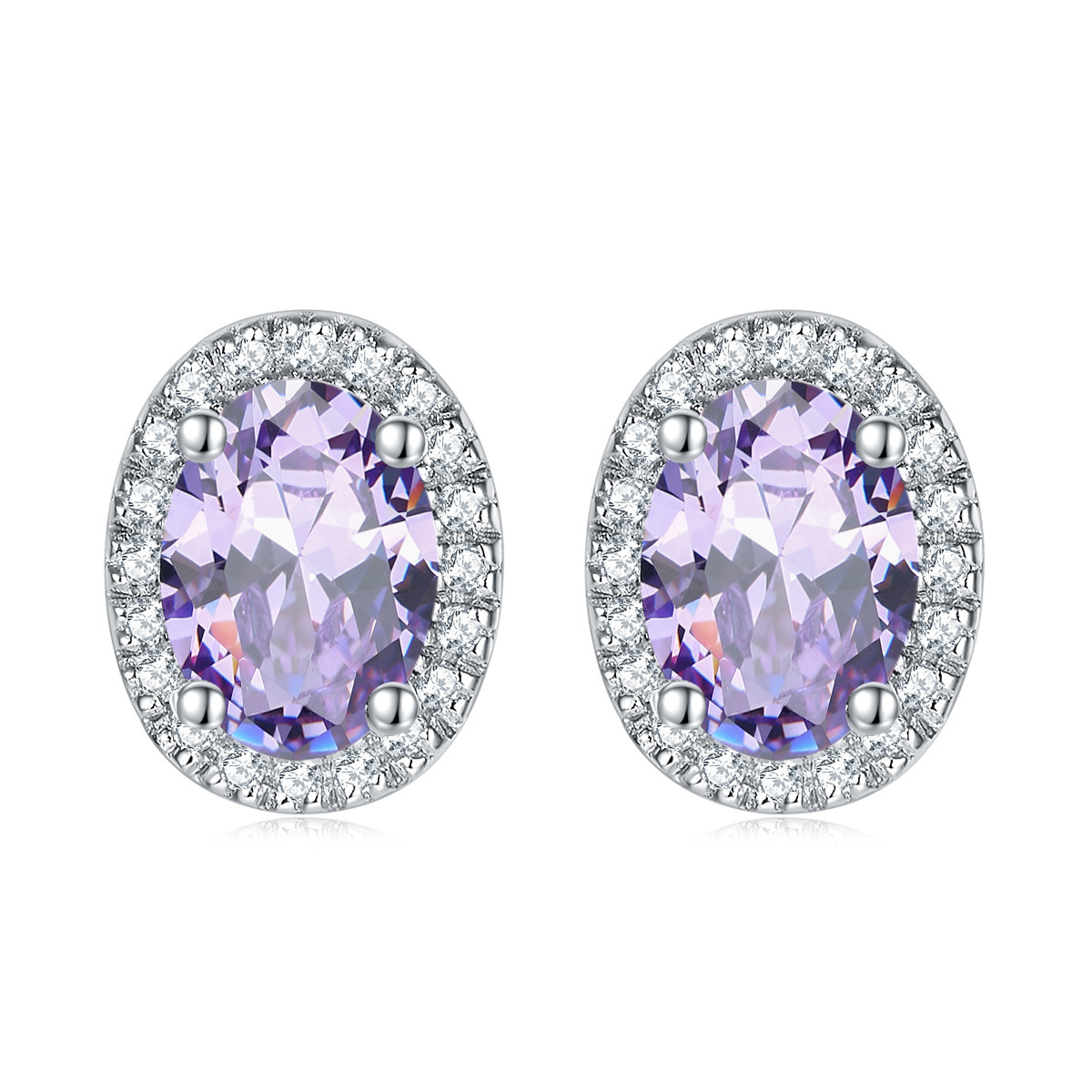 S925 sterling silver round constellation stud earrings European and American cross-border colored zircon colored gemstone earrings high-quality ear jewelry wholesale