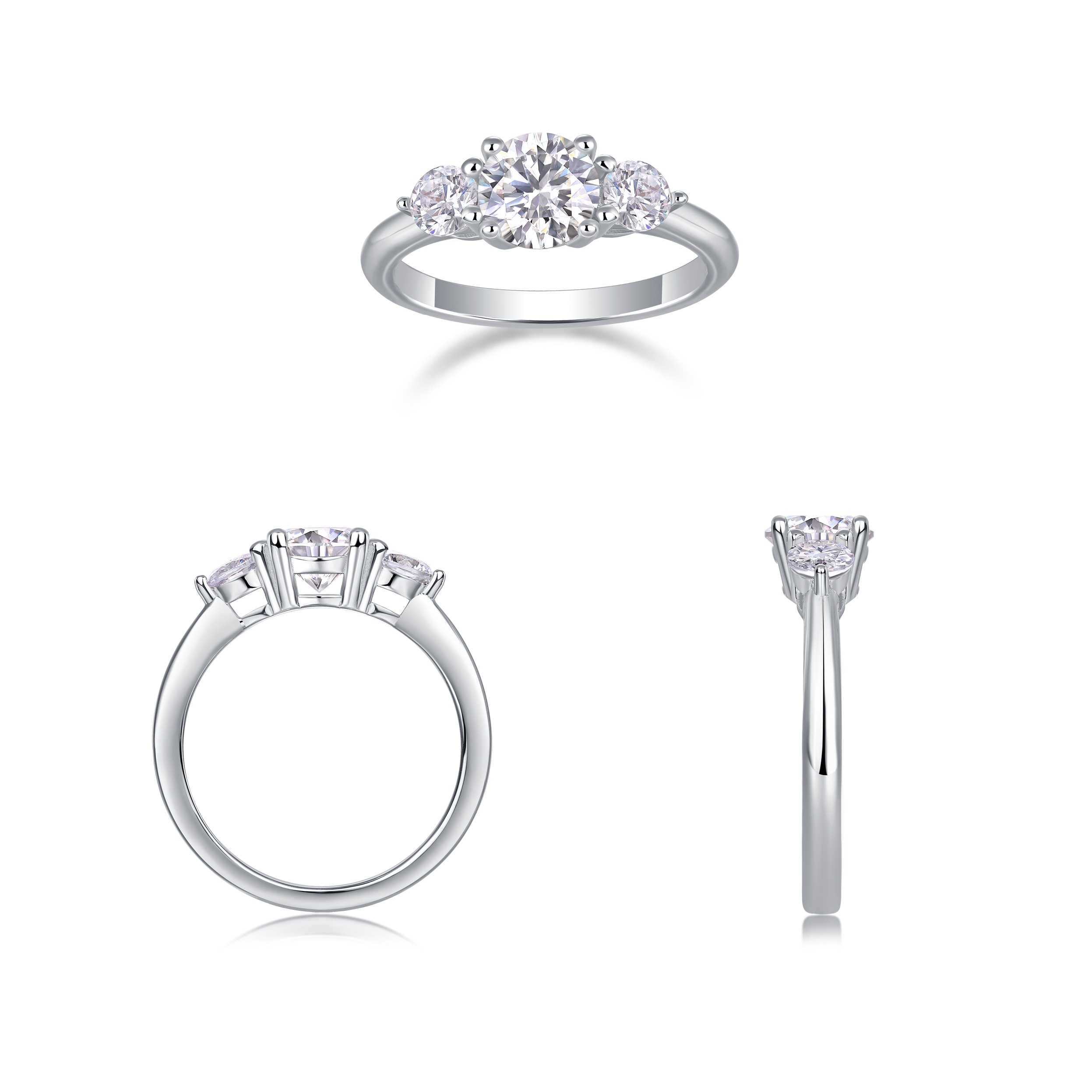 S925 Sterling Silver Round Moissanite Rings Rhodium Plated Engagement Ring Jewelry For Manufacturer