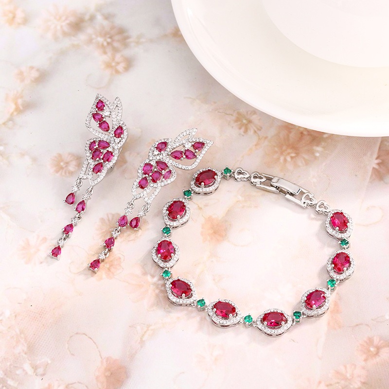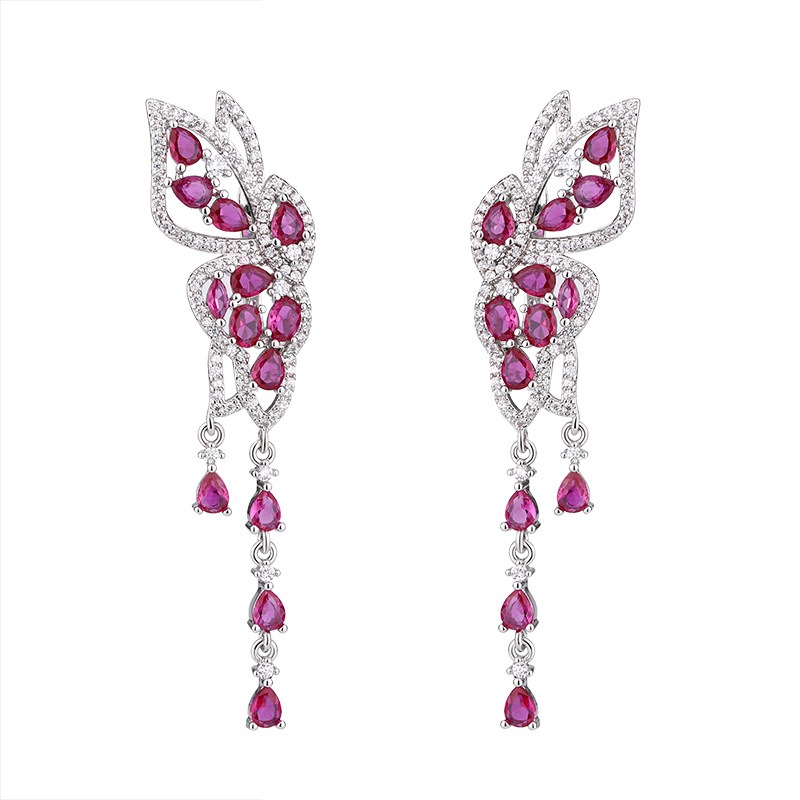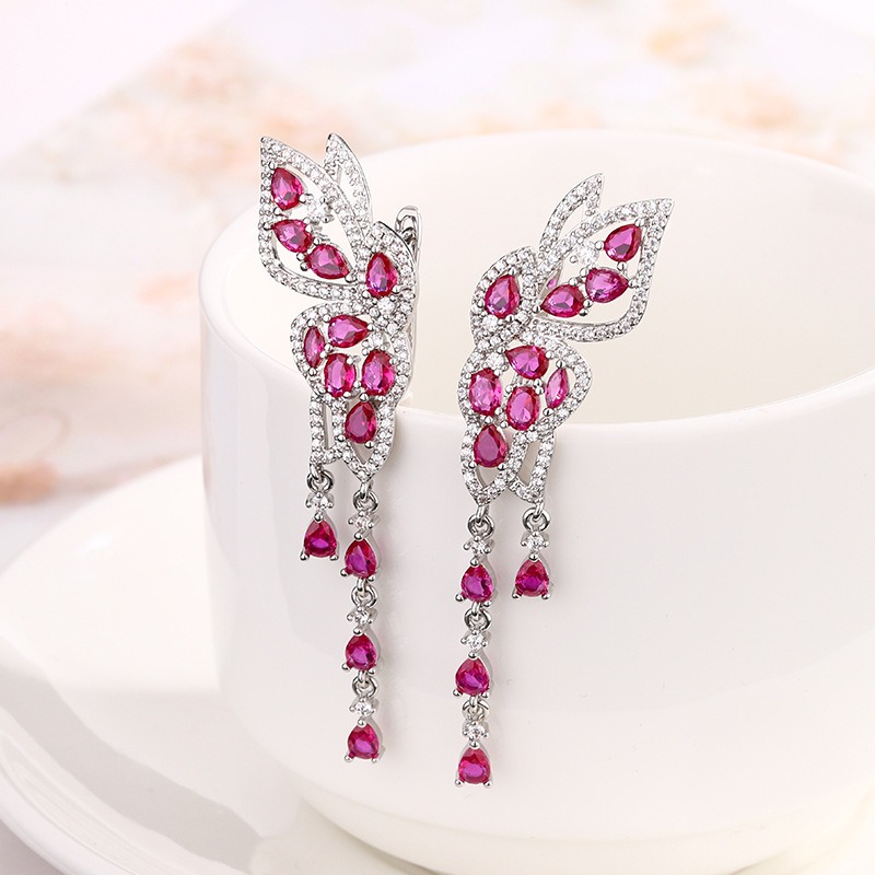 S925 sterling silver ruby set butterfly tassel bracelet earrings