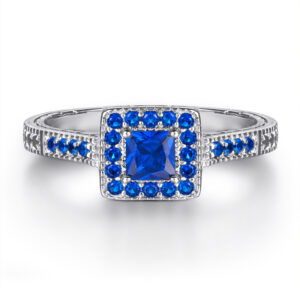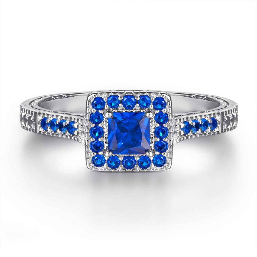 S925 Sterling Silver Sapphire Ring Women’s Niche Fashion Original Design Square Diamond Ring Couple Ring