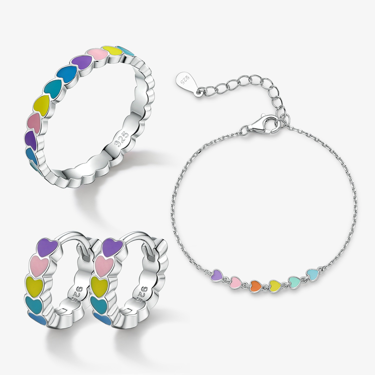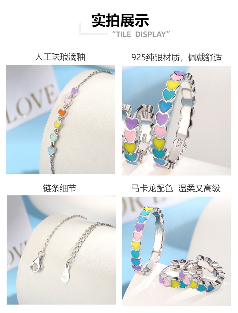 S925 sterling silver set with Macron heart-shaped oil dripping technology