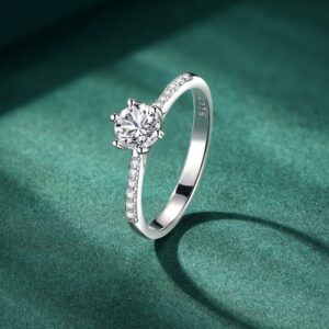 S925 sterling silver six-prong zircon ring for women