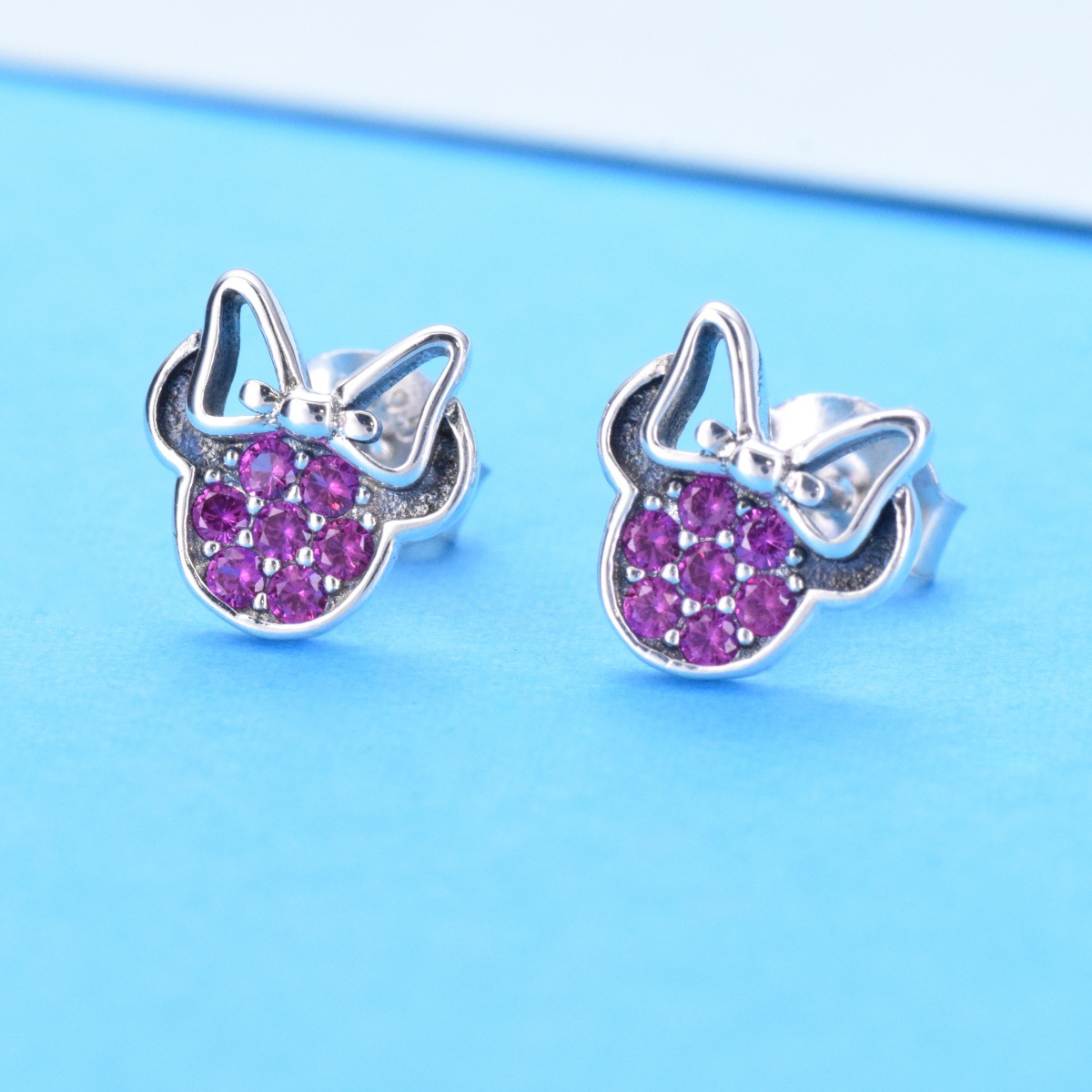 S925 sterling silver sparkling pink zircon stud earrings fashion fashion flower bow earrings female hair