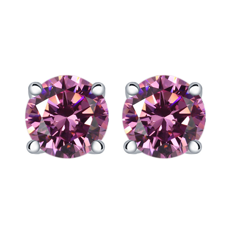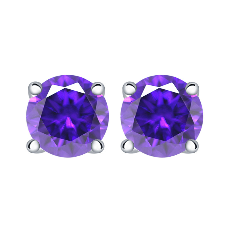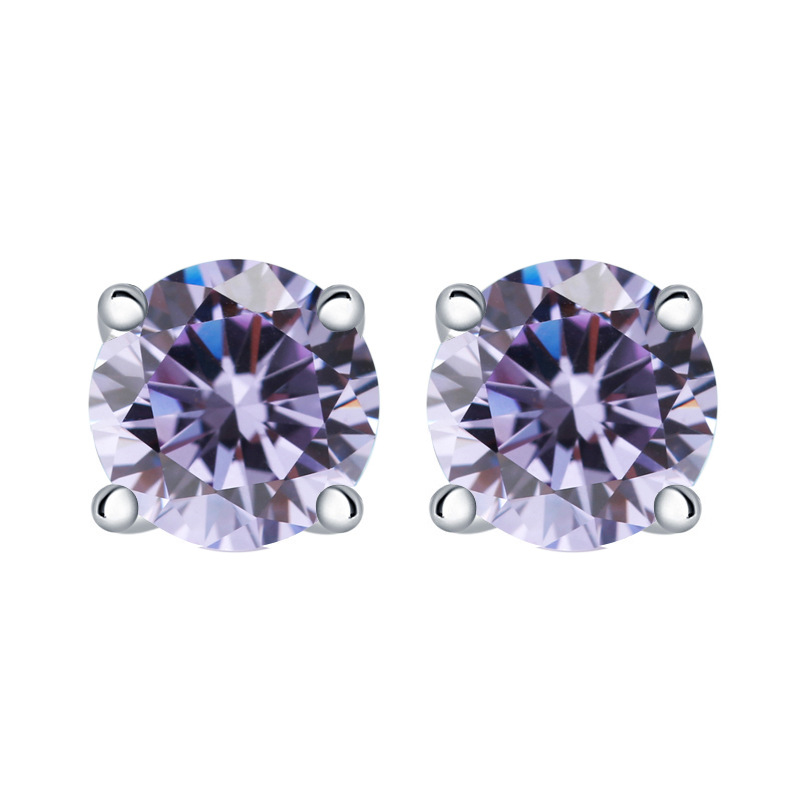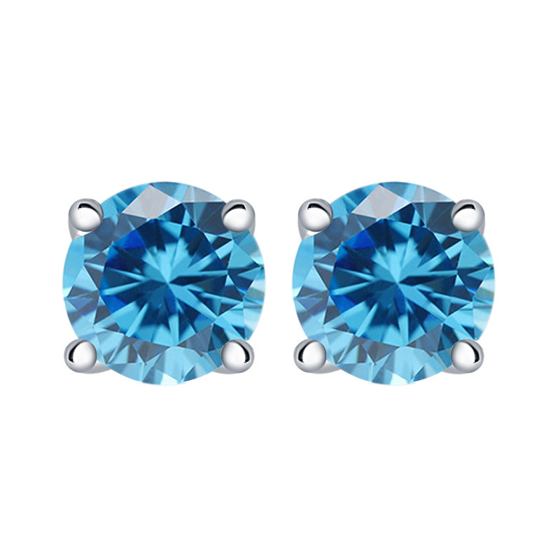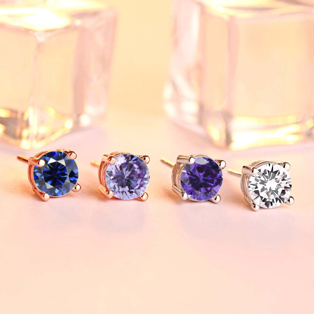 S925 sterling silver square four claw color zircon stud earrings women’s earrings european and american silver birthday stone earrings wholesale