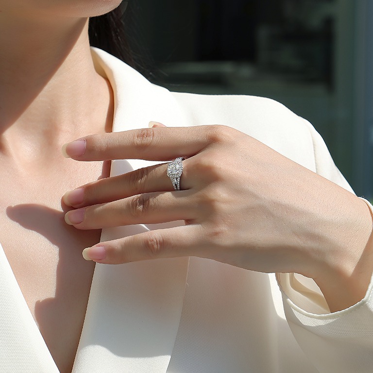 S925 sterling silver square ring moissanite diamond wedding engagement ring for women