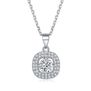S925 Sterling Silver High Carbon Diamond 5A Zircon Square Diamond Ring Crystal Stud Earrings Women’s Square Pendant Necklace Jewelry Set