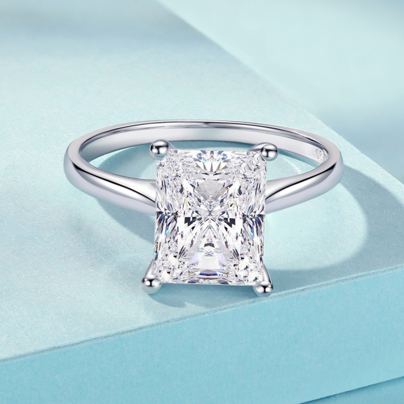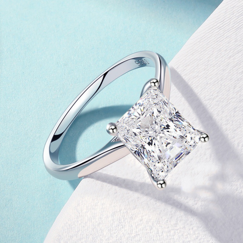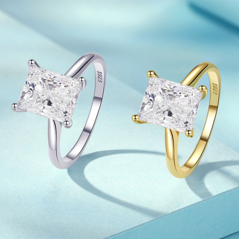 S925 sterling silver square rings four-claw inlaid zircon ring