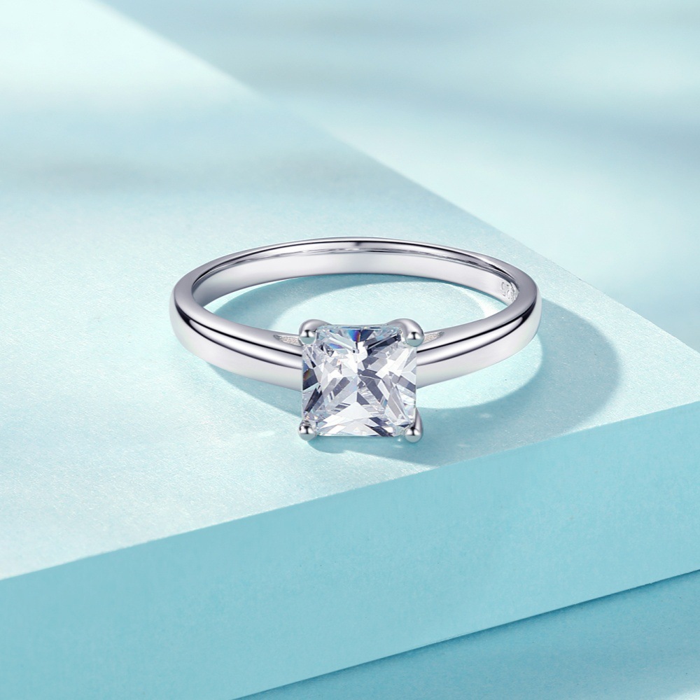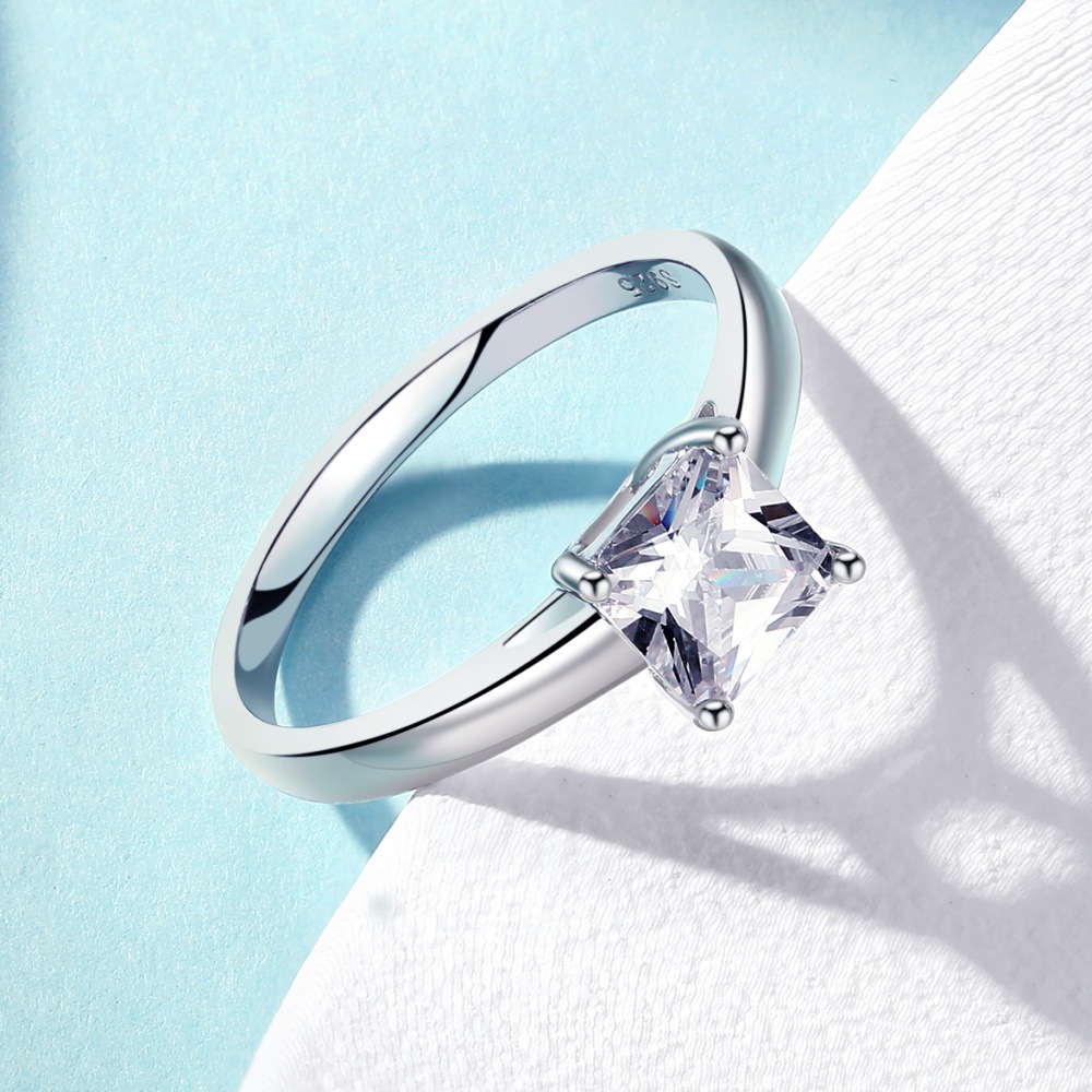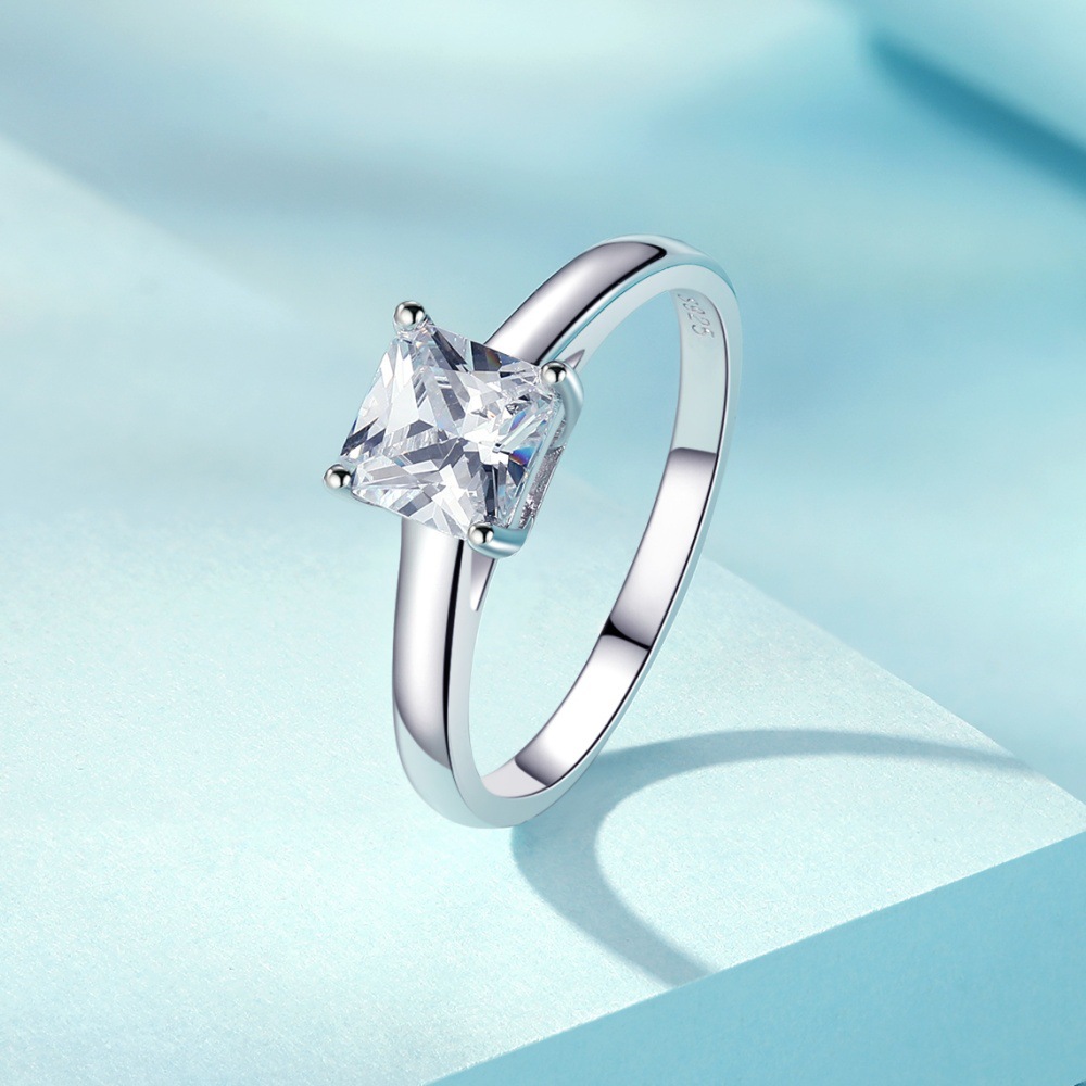 S925 sterling silver square zircon ring princess cube diamond ring four claw ring