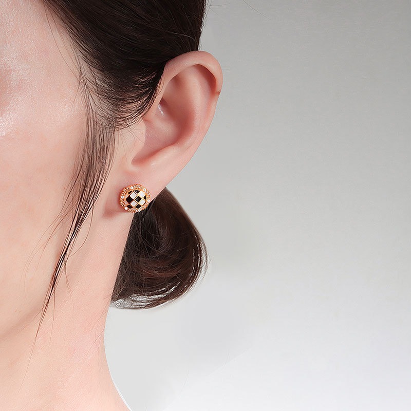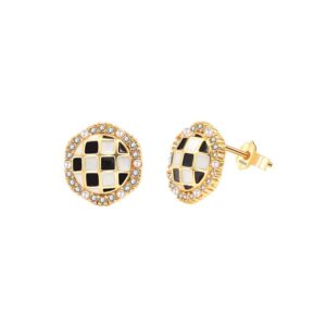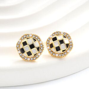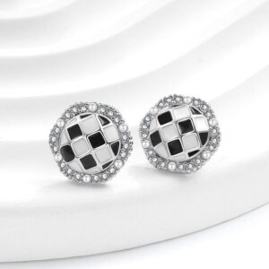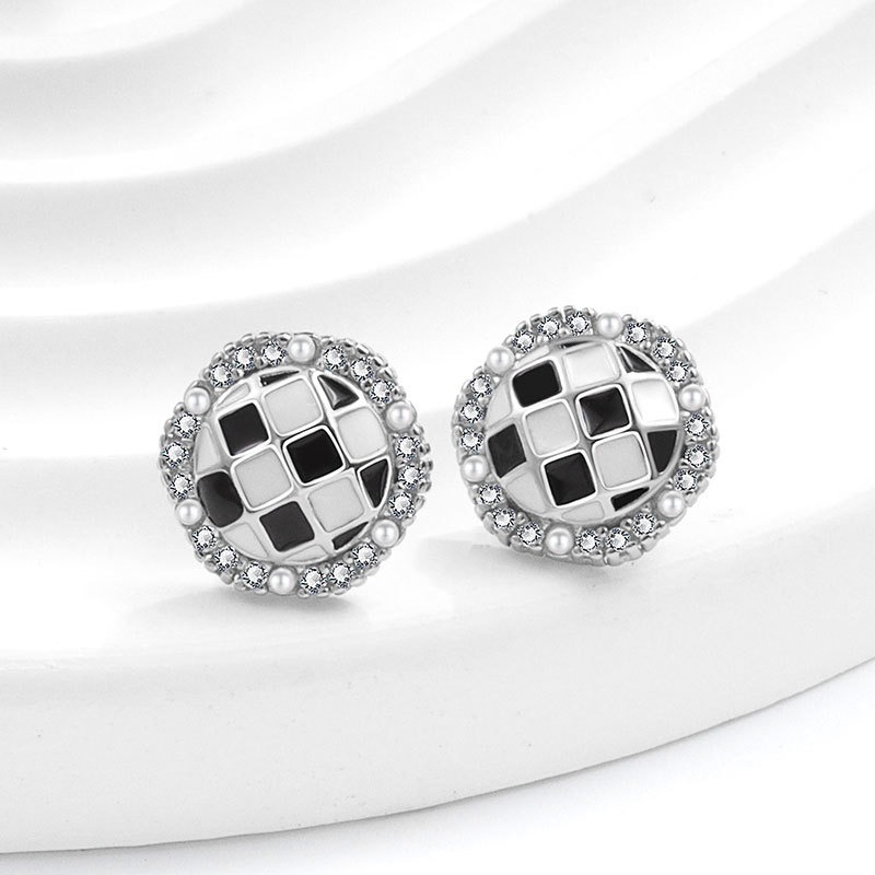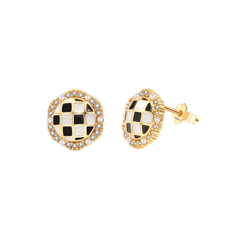S925 sterling silver stud earrings black and white checkerboard earrings