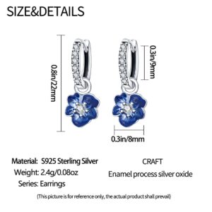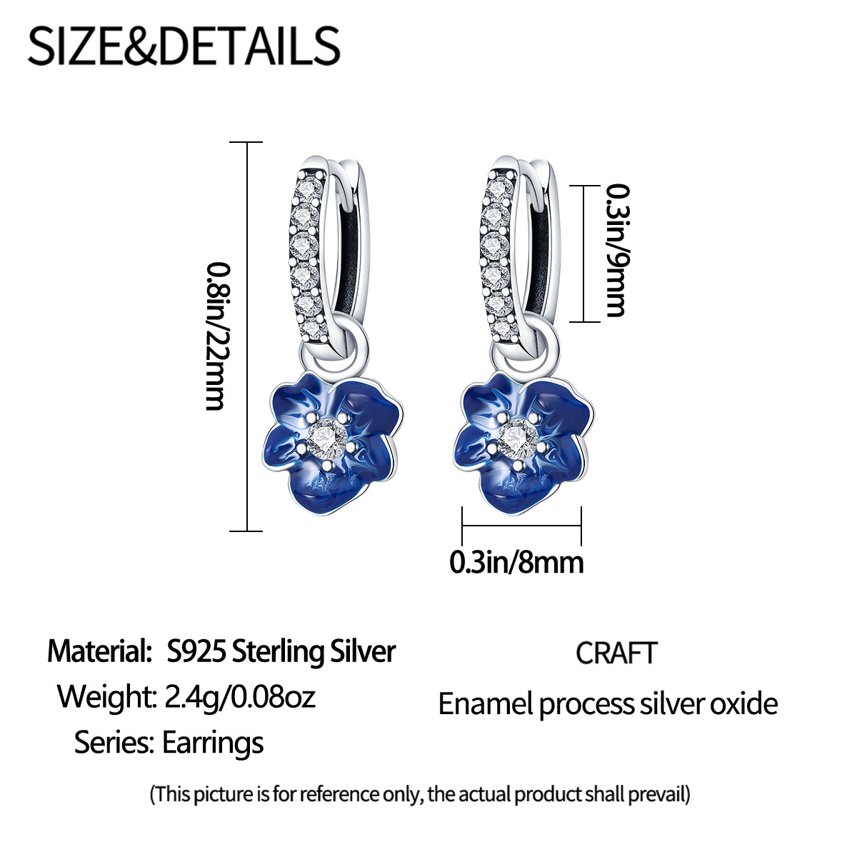 S925 Sterling Silver Stud Earrings Blue Flower Earrings