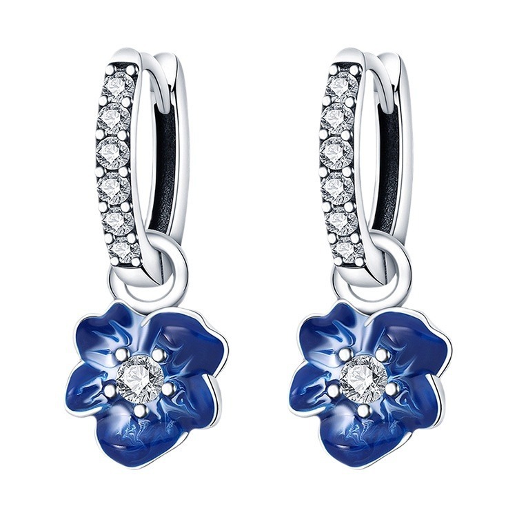 S925 Sterling Silver Stud Earrings Blue Flower Earrings quantity