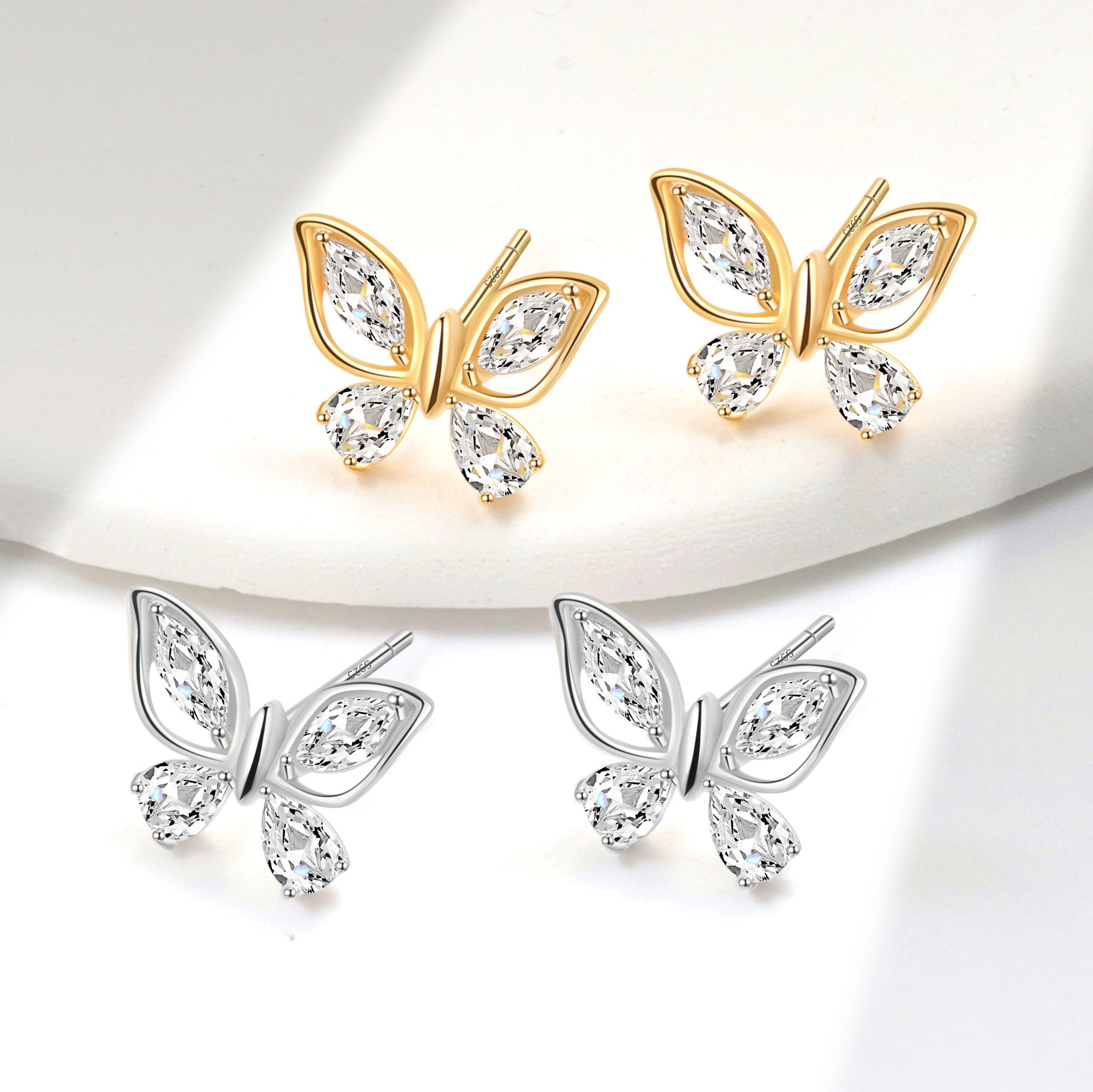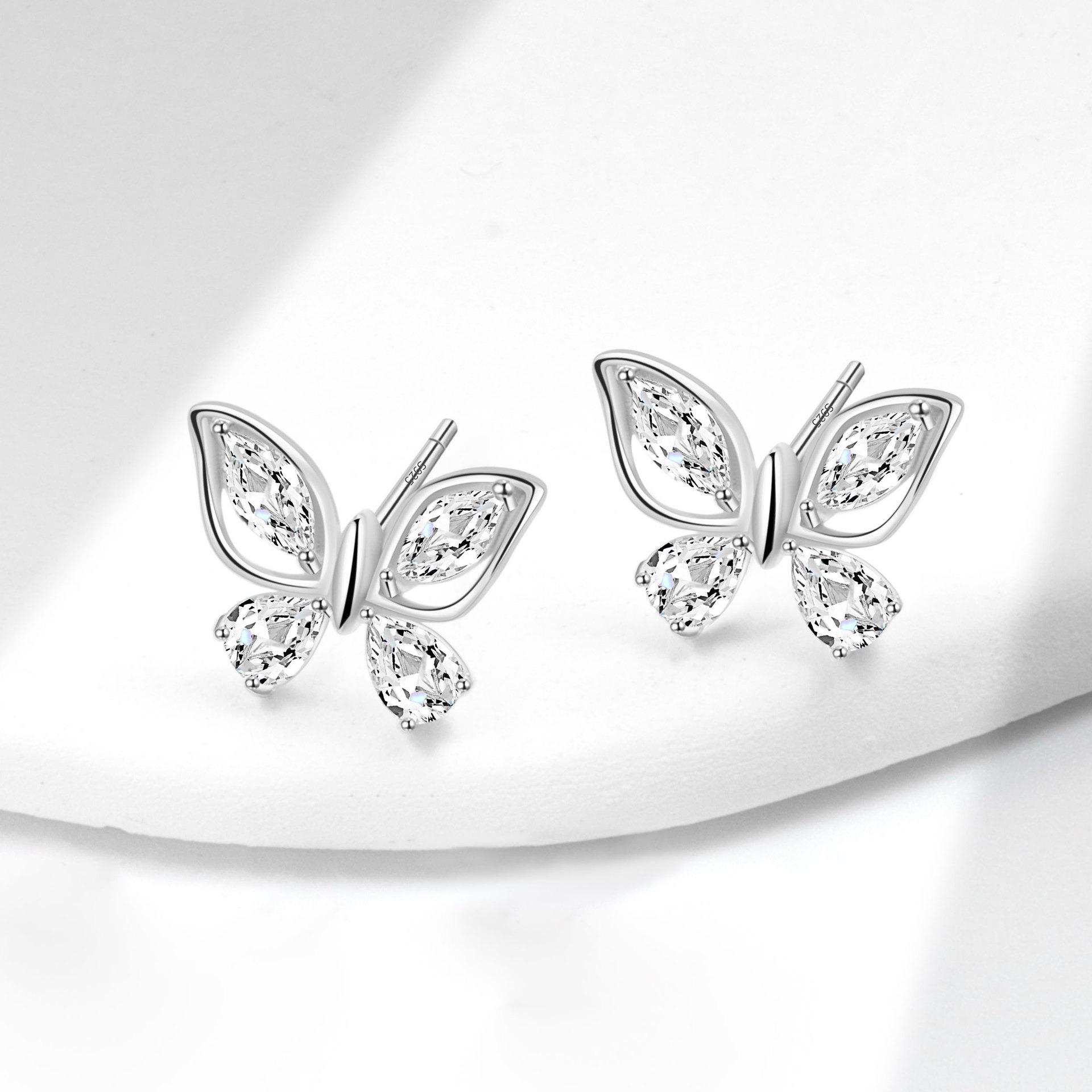 New S925 Sterling Silver Butterfly Big Brand Jewelry Set 4 Piece Set Stud Ring Necklace Jewelry Set