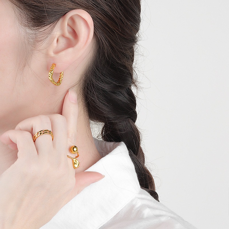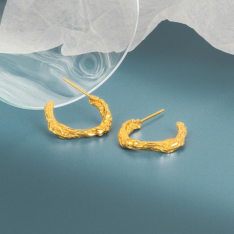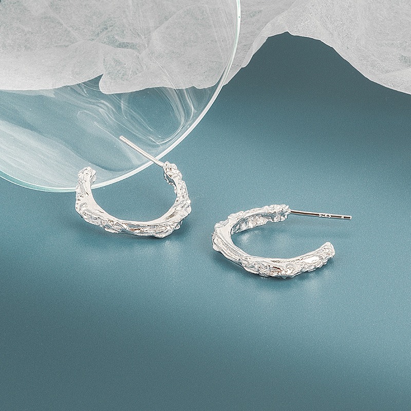 S925 sterling silver stud earrings C-shaped irregular concave and convex earrings