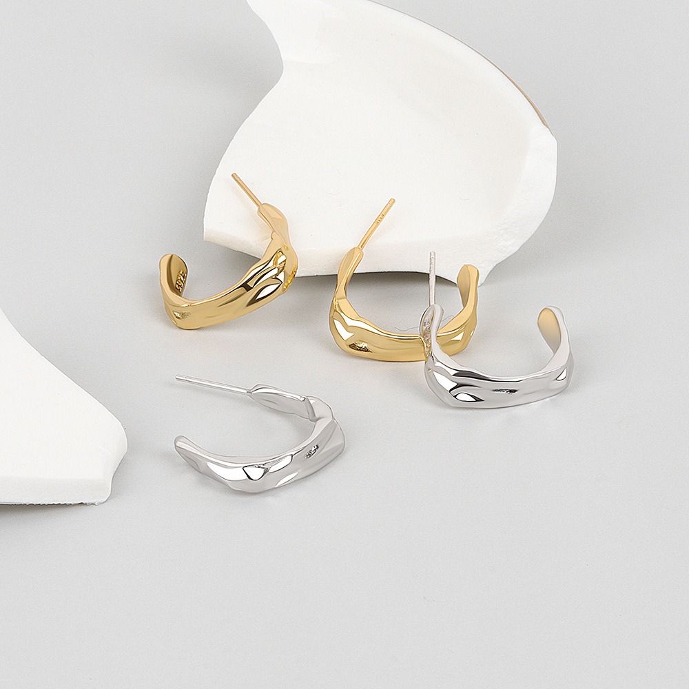 S925 sterling silver stud earrings C-shaped irregular earrings