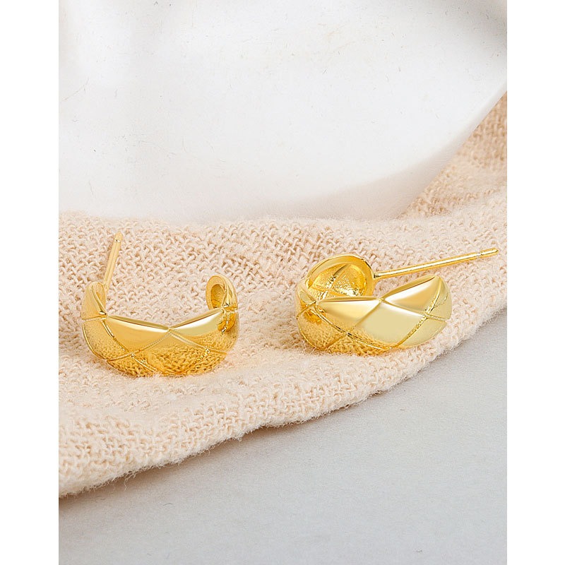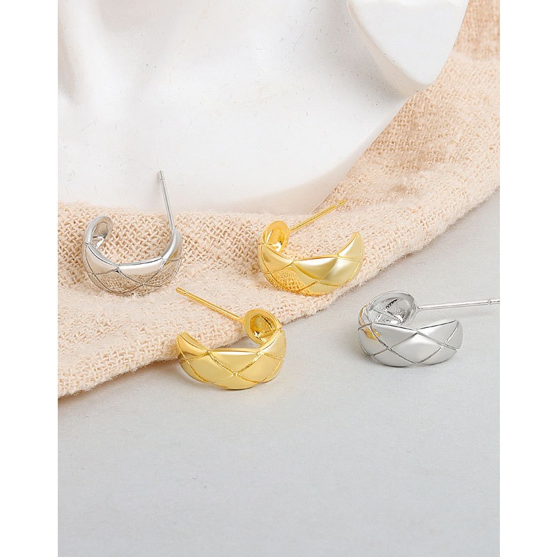 S925 sterling silver stud earrings diamond plaid pattern earrings