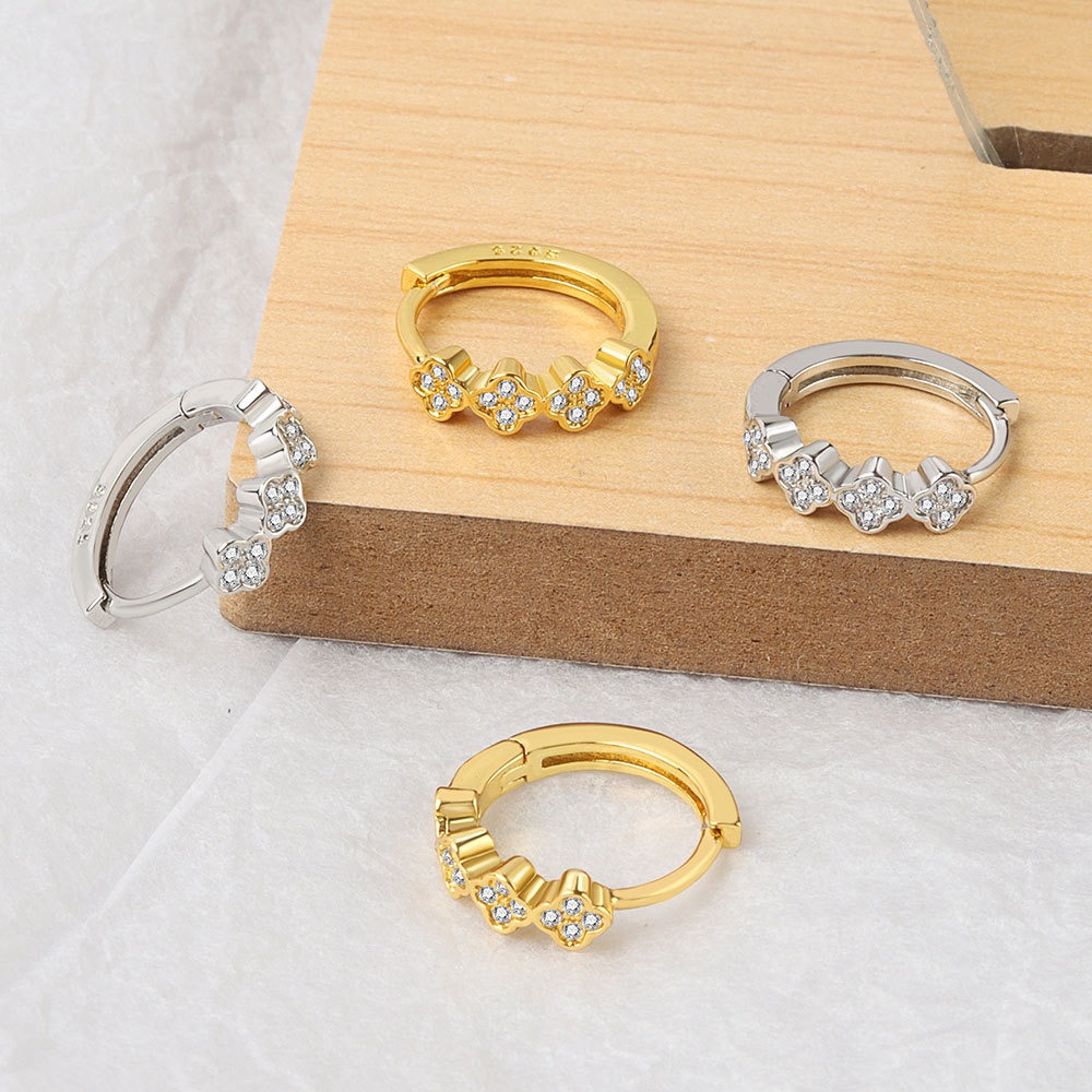 S925 sterling silver stud earrings geometric four-leaf clover earrings