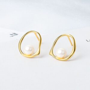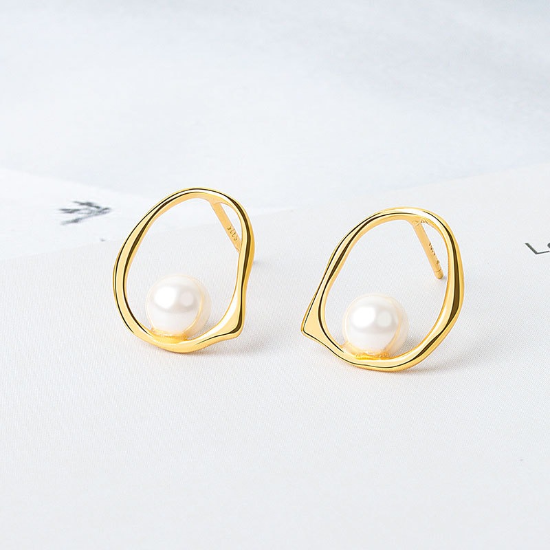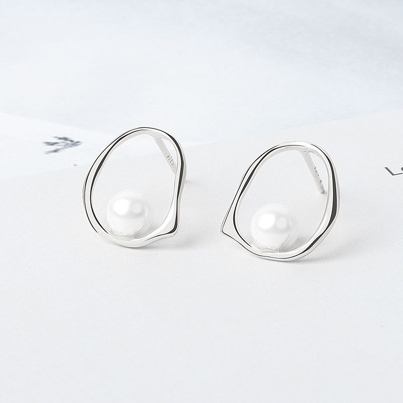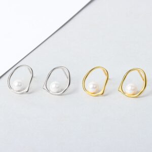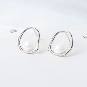 S925 sterling silver stud earrings geometric round pearl earrings quantity
