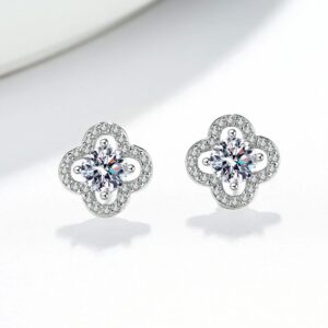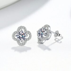 S925 sterling silver stud earrings GRA moissanite clover grass earrings