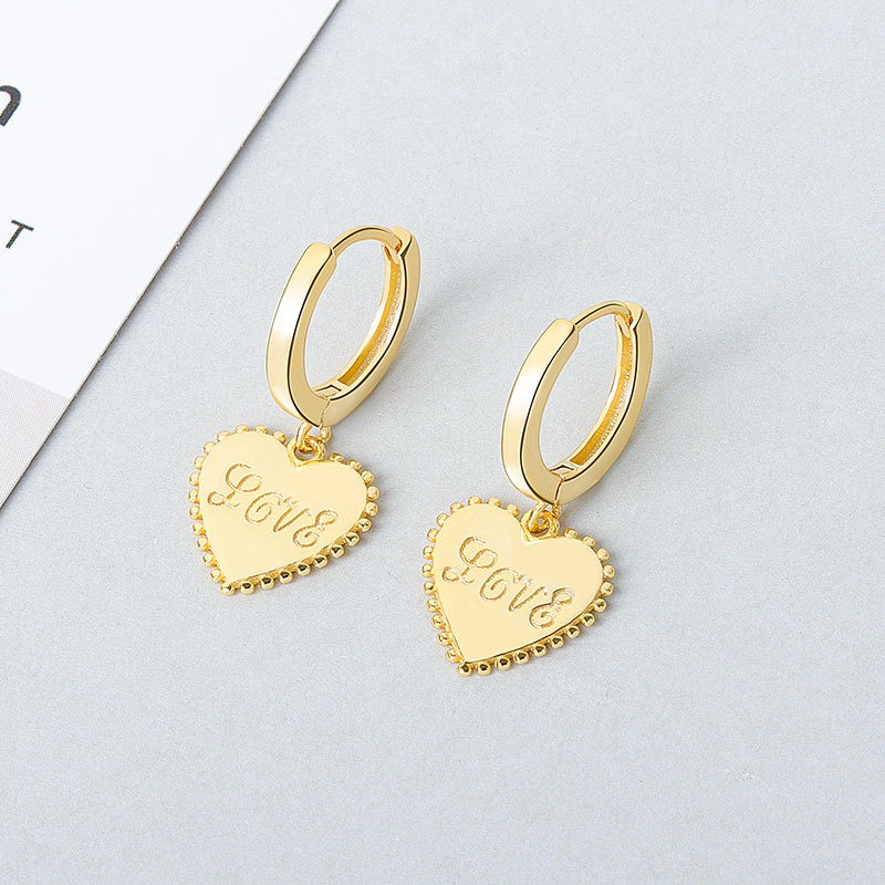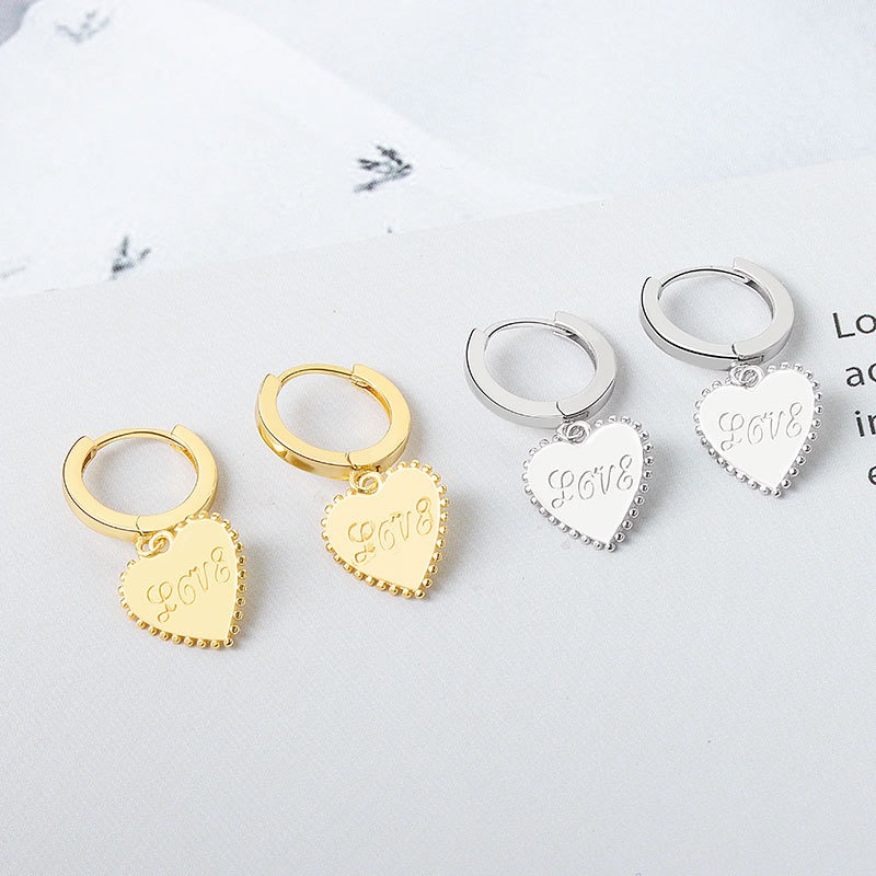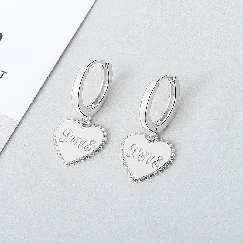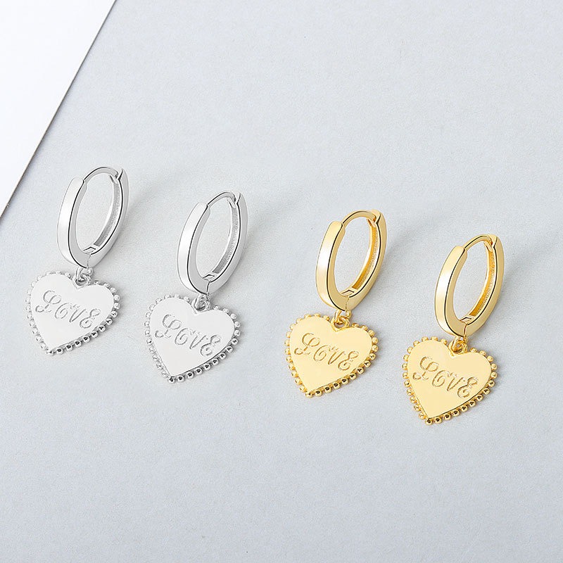 S925 sterling silver stud earrings heart-shaped love earrings