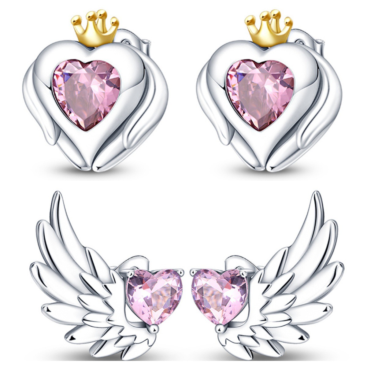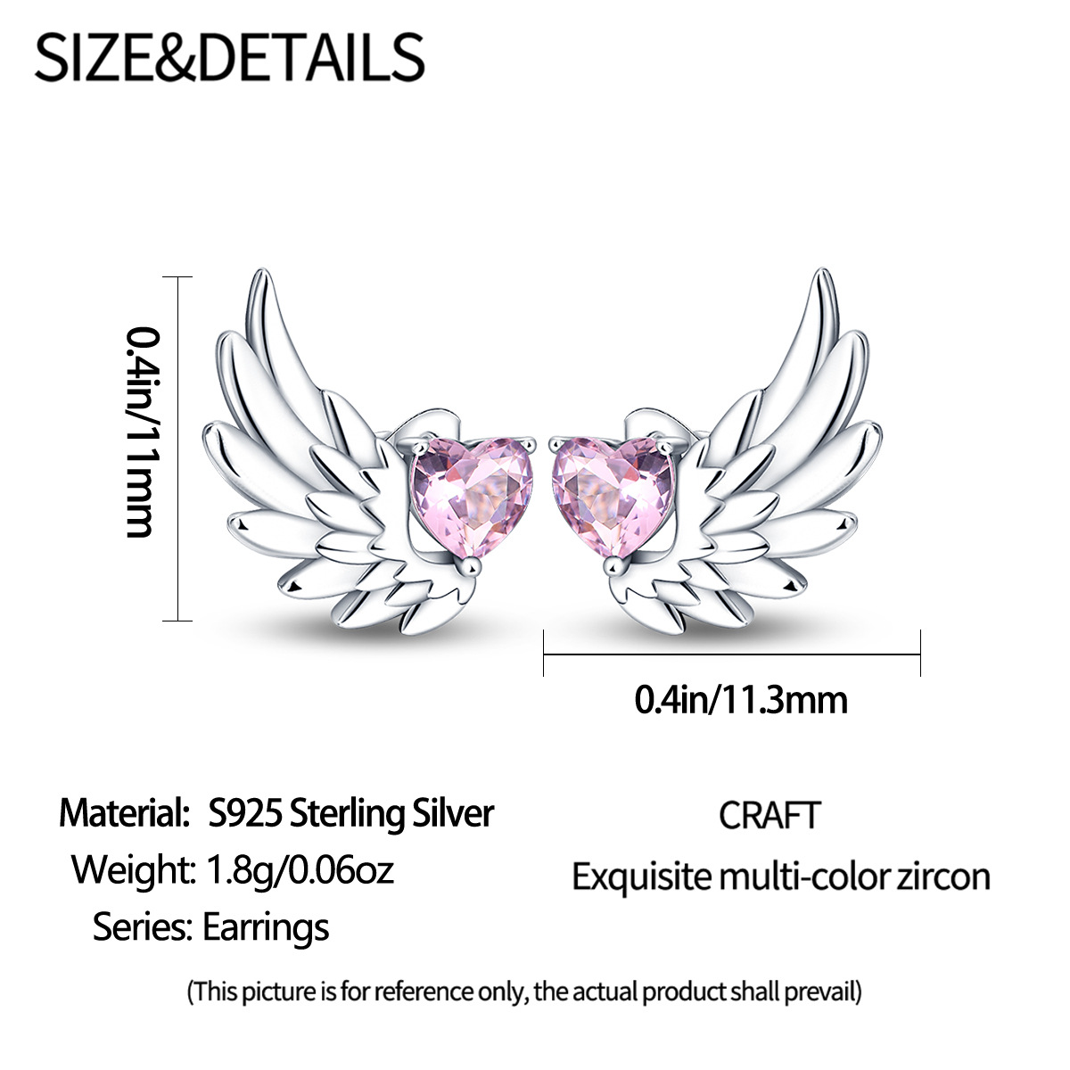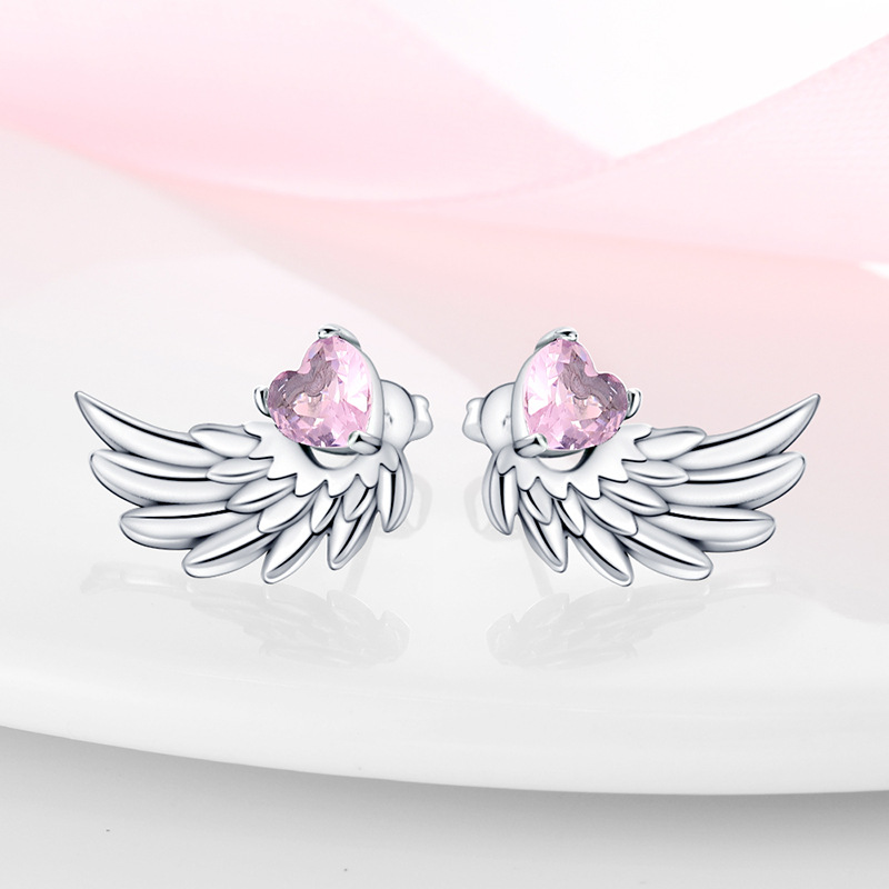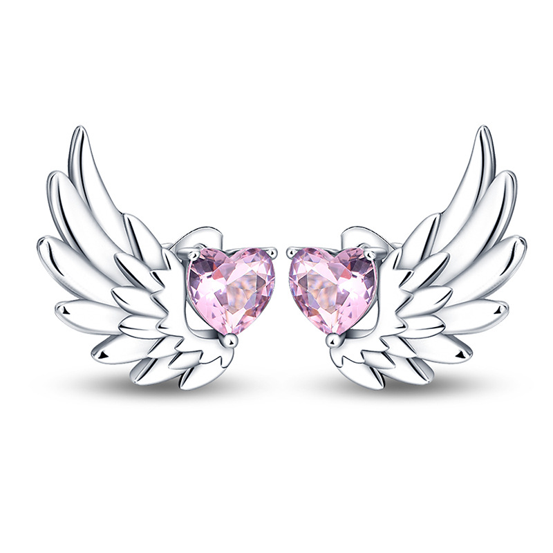 S925 sterling silver stud earrings heart-shaped wing earrings