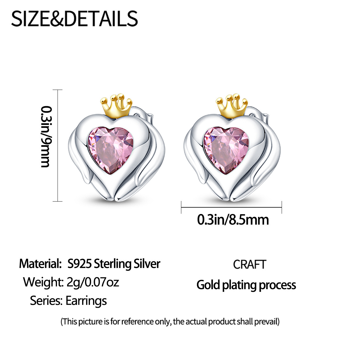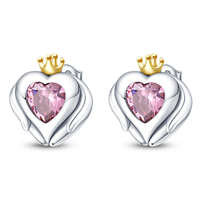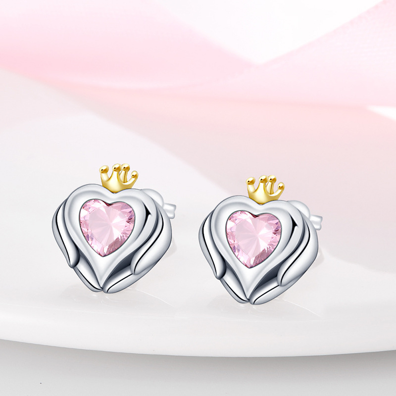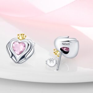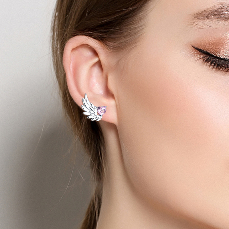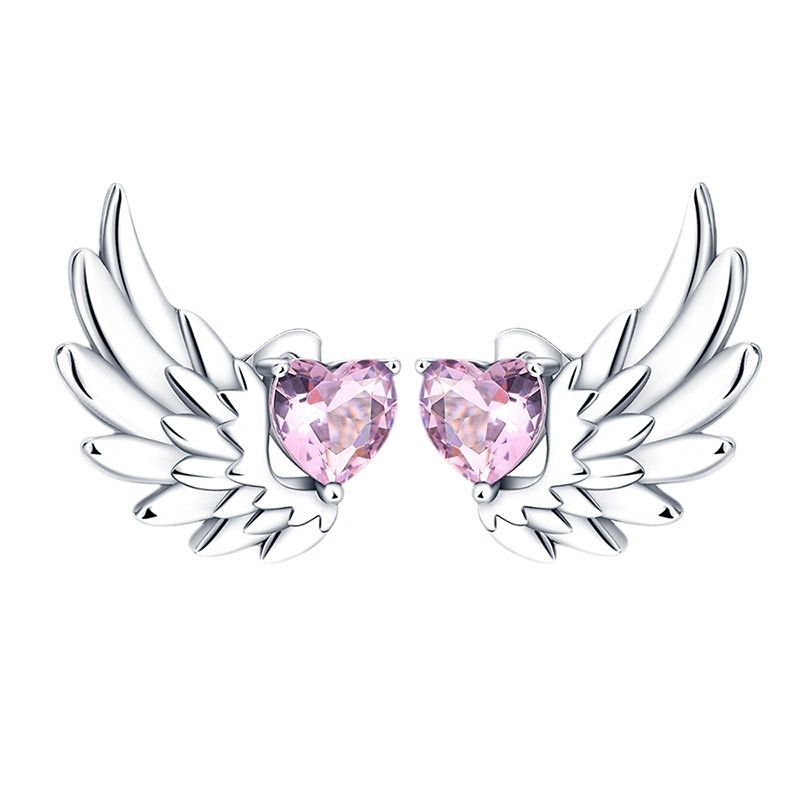 S925 sterling silver stud earrings heart-shaped wing earrings
