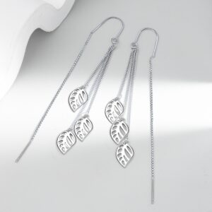 S925 sterling silver stud earrings long tassel four-leaf clover earrings