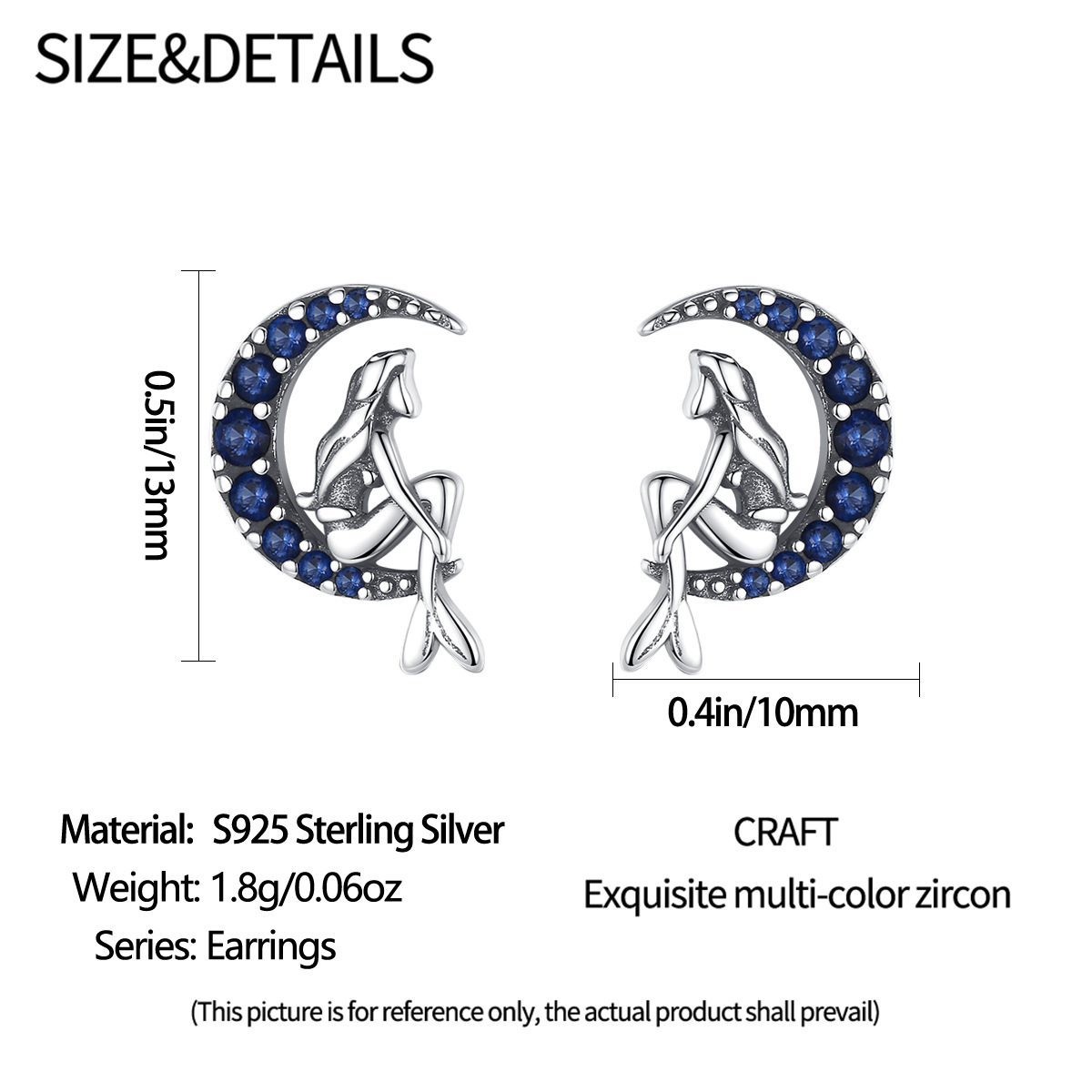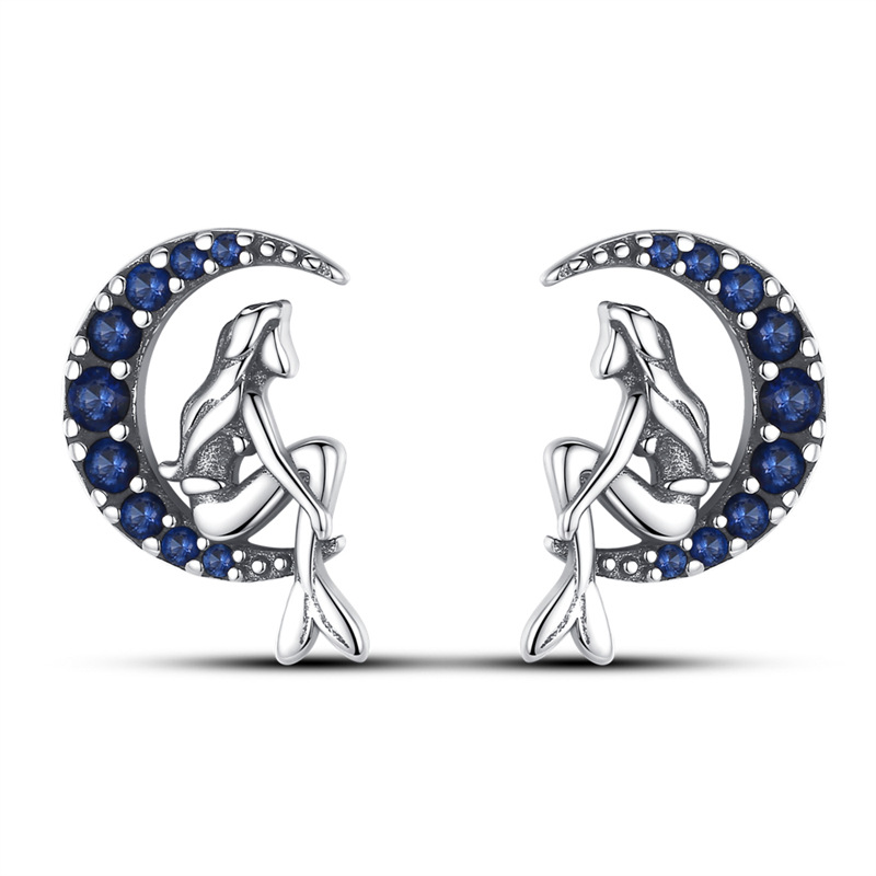 S925 sterling silver stud earrings mermaid earrings