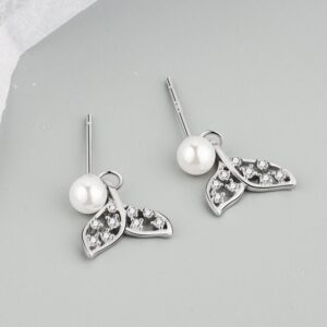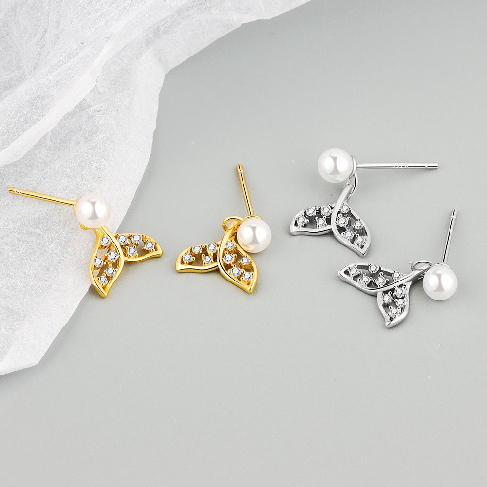 S925 sterling silver stud earrings mermaid tail pearl earrings