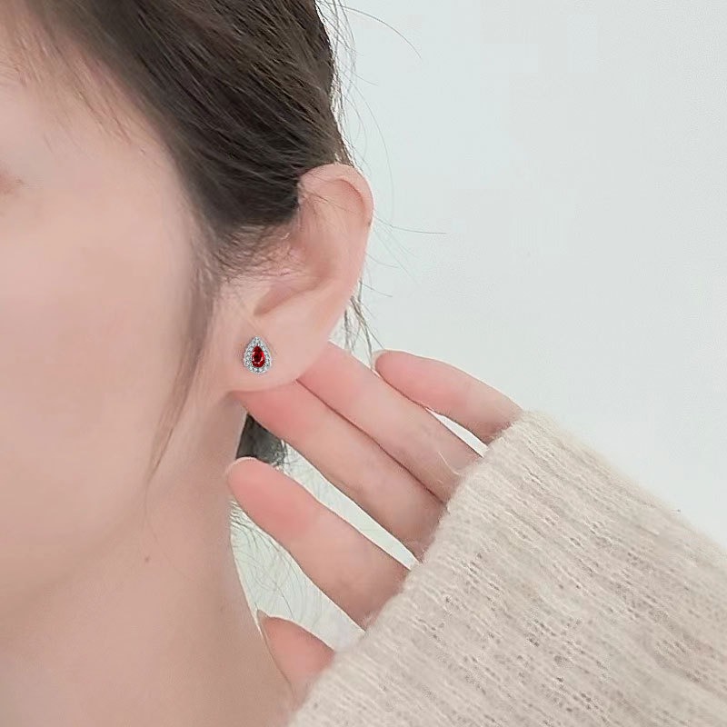 S925 sterling silver stud earrings pear-shaped zircon earrings