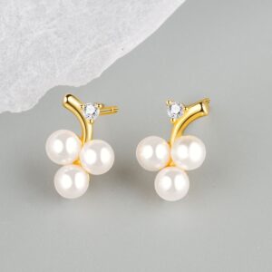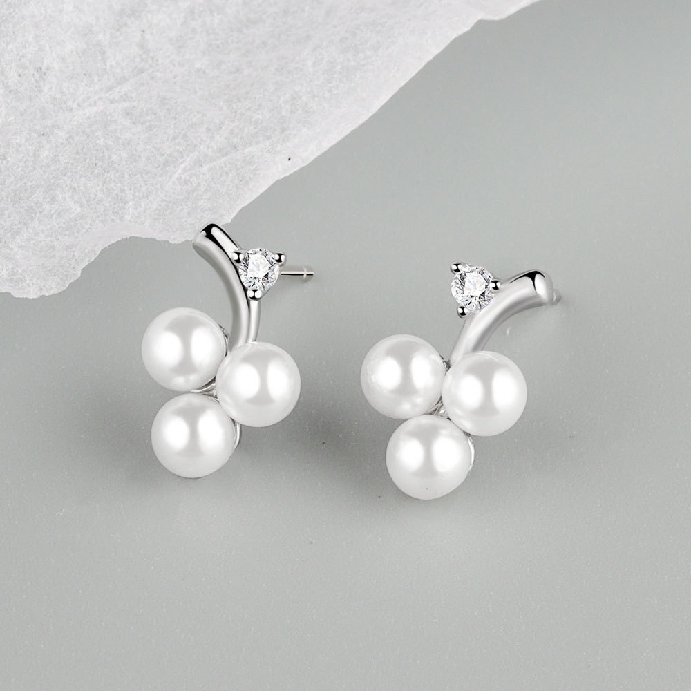 S925 sterling silver stud earrings and pearl heart-shaped earrings