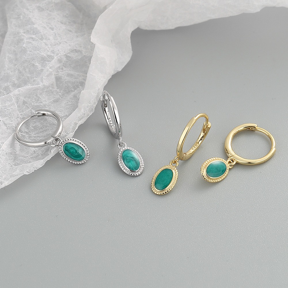 S925 sterling silver stud earrings starry green enamel stud earrings