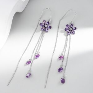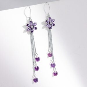 S925 sterling silver stud earrings tassel crystal flower earrings