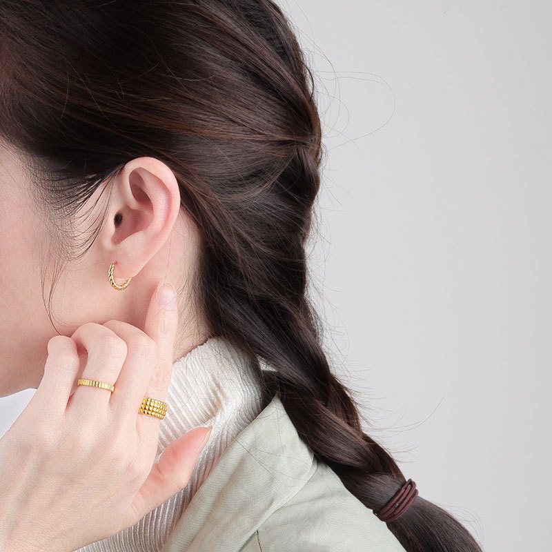 S925 sterling silver stud earrings hammer double row hoop earrings